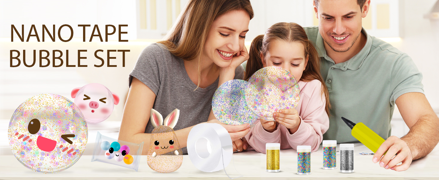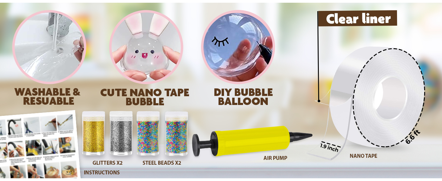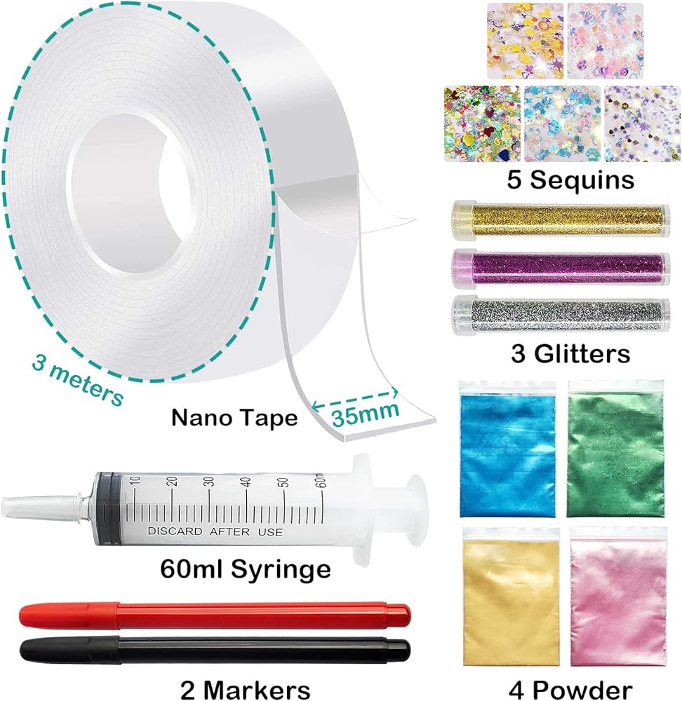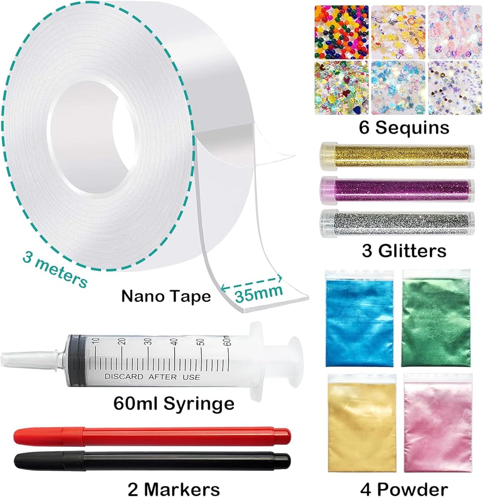 🌟مجموعة فقاعات شريط نانو مطورة - تتضمن شريط نانو أوسع 40 مم، ومضخة هواء، وملصقين تعبيريين، و10 ترتر، و3 أنواع من البودرة اللامعة. كل ذلك جاهز للمشاريع الممتعة والإبداعية!