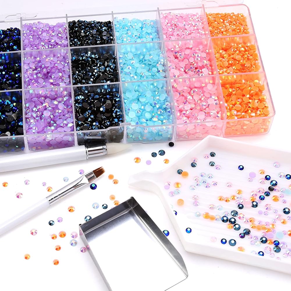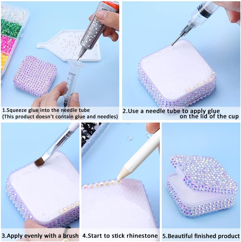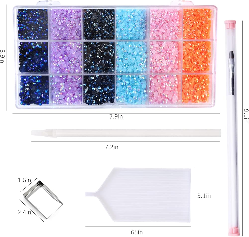 🎀【مجموعة قيمة رائعة】تتضمن العبوة أحجار الراين الراتنجية متعددة الألوان، وقلم تنقيط احترافي. تساعدك صينية الكريستال الكبيرة على الحفاظ على المجوهرات اليدوية في المكان المناسب. فرشاة صمغ واحدة (لا تتضمن غراء الأظافر). الصندوق منفصل بـ 24 شبكة صغيرة لتجنب خلط أحجار الراين بألوان مختلفة أثناء الاستخدام، وهو مناسب للتخزين.