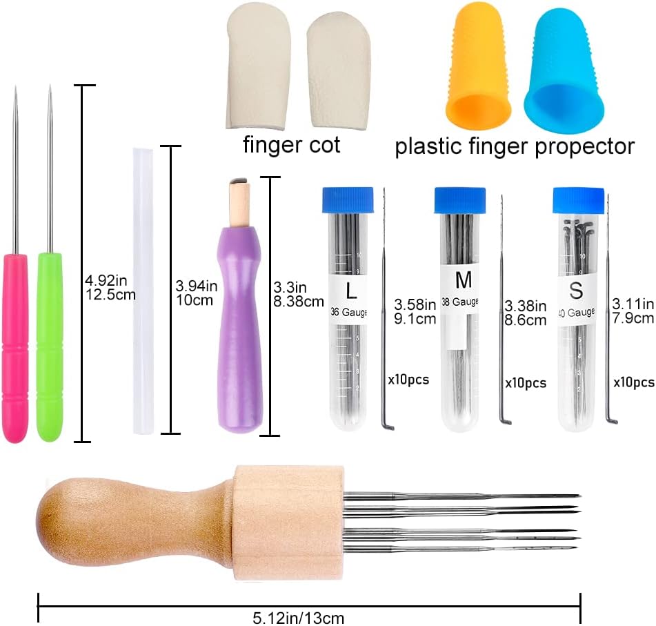 إبر لباد الصوف: تتضمن المجموعة ثلاثة أحجام مختلفة من إبر اللباد: 40 مقياس و38 مقياس و36. يمكنك اختيار إبر مختلفة الحجم حسب احتياجاتك.