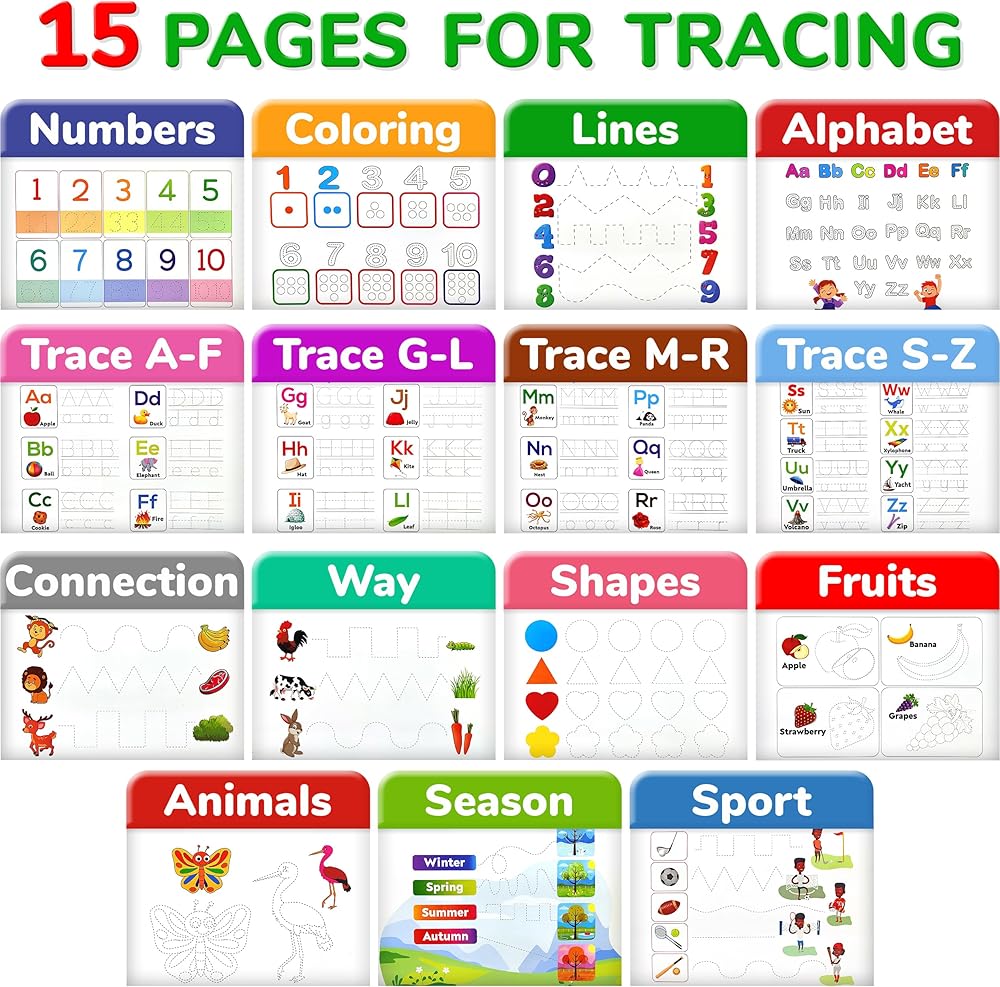 𝗧𝗵𝗲 𝗕𝘂𝘀𝘆 𝗕𝗼𝗼𝗸 𝗶𝘀 𝗮 𝘃𝗲𝗿𝘀𝗮𝘁𝗶𝗹𝗲 𝗮𝗻𝗱 𝗲𝗻𝗴 𝗮𝗴𝗶𝗻𝗴 𝗲𝗱𝘂𝗰𝗮𝘁𝗶𝗼𝗻𝗮𝗹 𝘁𝗼𝘆 مثاليًا للأطفال من جميع الأعمار. إنه مليء بـ 15 موضوعًا و15 صفحة رسم وكتابة تغطي مجموعة واسعة من المواضيع، بما في ذلك الأرقام والحروف الأبجدية والطعام والحيوانات والألوان والأشكال والطقس والمزيد. تم تصميم كتاب Busy Book لتعزيز التطور المعرفي والمهارات الحركية الدقيقة. يشجع الأطفال على الاستكشاف والتعلم من خلال الأنشطة العملية