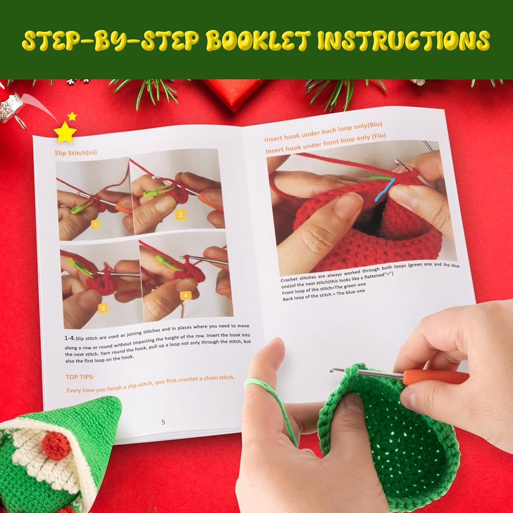 دروس تعليمية خطوة بخطوة - تم تصميم دروسنا التعليمية سهلة المتابعة للمبتدئين بالكامل، وتوجيههم من البداية إلى النهاية. يوجد دليلان في العبوة. يوفر الدليل الأساسي شرحًا تفصيليًا لكل طريقة كروشيه غرزة مطلوبة لحياكة قزم الكريسماس باستخدام الصور والنصوص. يوضح دليل الكروشيه بنمط قزم الكريسماس عدد الغرز الخاصة بجنوم الكريسماس والخطوات التي تتطلب اهتمامًا خاصًا. أولاً، تعلم بصبر طريقة الكروشيه التي تستخدمها