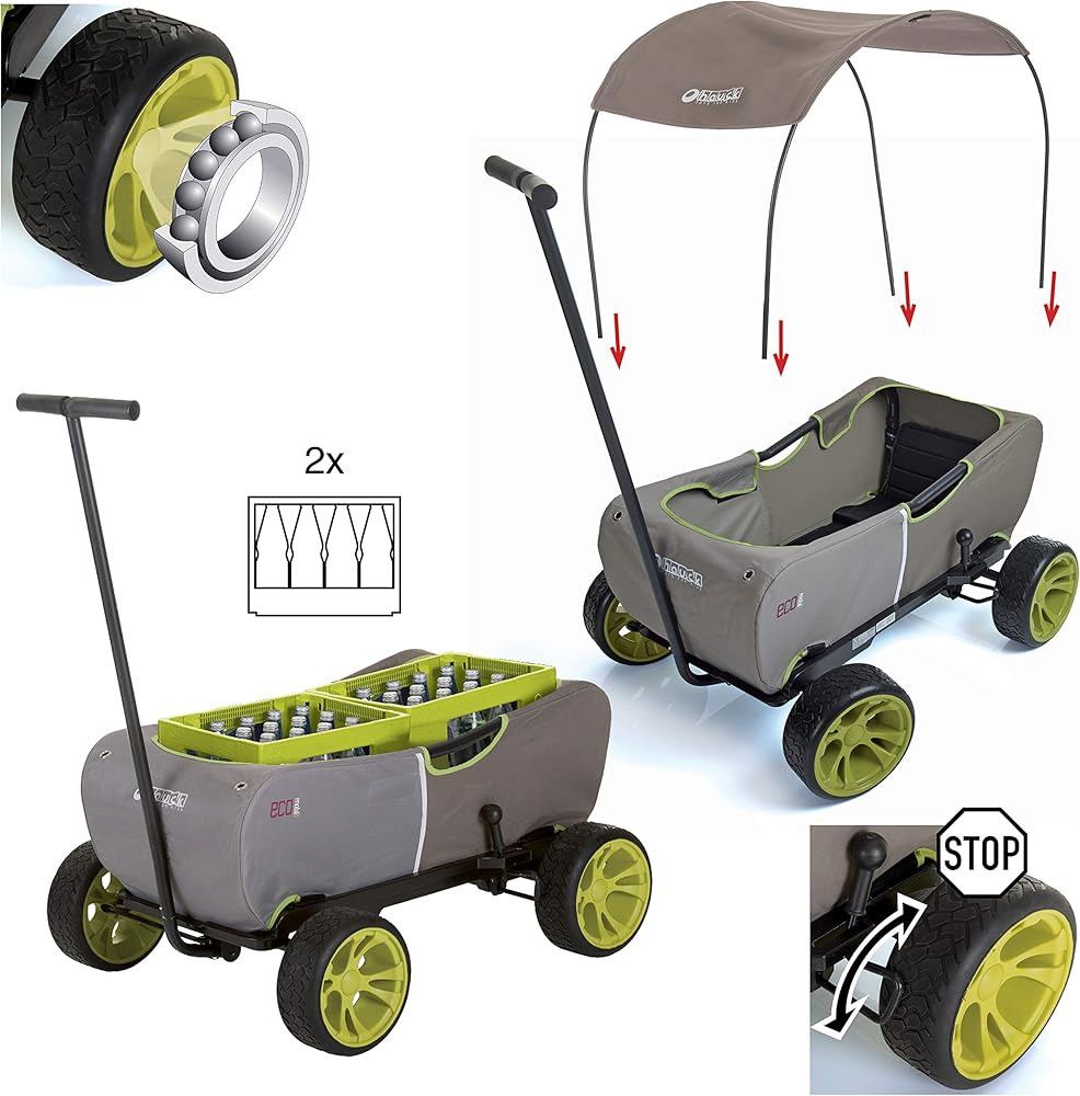 أخيرًا ، تم تصنيع المزيج المثالي من الراحة والأناقة في عربة السحب اليدوية هوك Eco wagon، بإطار أنبوب فولاذي قابل للطي ملفوف بنسيج باليستي متين. القماش قابل للغسل يدويًا ويمكن طيه بسهولة باستخدام إطار الأنبوب الفولاذي. يناسب صندوق السيارة متوسطة الحجم. تتميز العجلات الرياضية بالمطاط الناعم المتين - إسفنج ايفا سريع الفك بالإضافة إلى المحامل مما يجعل السحب سهلاً. تتضمن عربة ايكو واجون أيضًا مظلة طقس قابلة للإزالة للحماية من الشمس والمطر. الأبعاد بعد التجميع: 38 × 30 × 39 بوصة. تحمل ما يصل إلى 120 باوند.