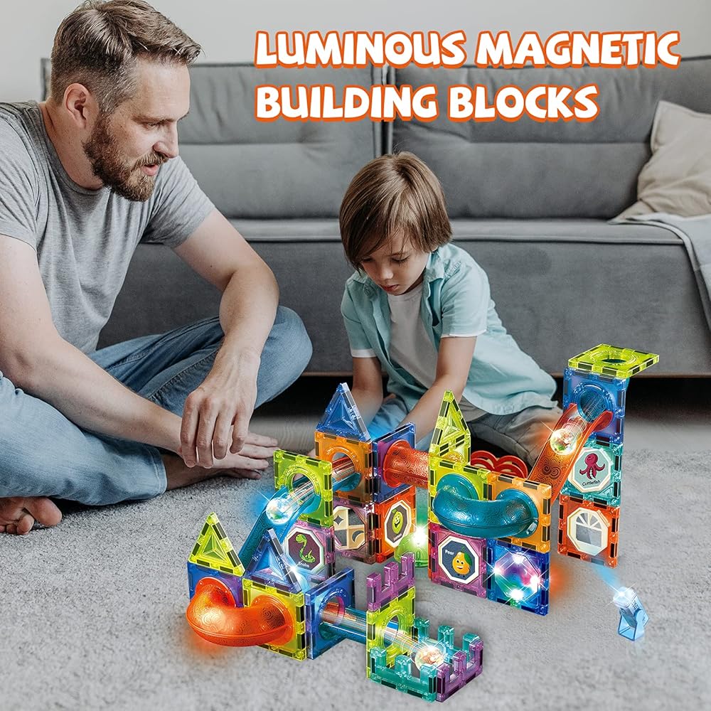 • ألعاب مكعبات البناء سهلة التركيب: تحتوي على 15 كرة بلاستيكية مقاس 14 مم، و15 كرة زجاجية مقاس 14 مم، و30 كرة رخام متوهجة، ورخام متوهج منزلق لإضاءة مسار السباق الرخامي بالكامل. بفضل الإرشادات التعليمية سهلة الاتباع، يتم بناء الأطفال كمسار متاهة رخامية كهربائي خاص بهم وفقًا للتعليمات.