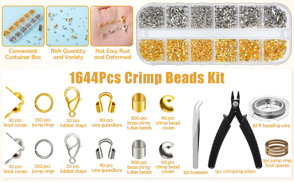 تتضمن العبوة: سوف تحصل على 1664 قطعة من الخرز المجعد بلونين، بما في ذلك 600 قطعة من خرز أنابيب التجعيد النحاسية، و220 قطعة من أغطية الخرز المجعدة، و60 قطعة من أغطية العقد، و220 قطعة من واقيات الأسلاك، و40 قطعة من مشابك جراد البحر، و500 قطعة من حلقات القفز، يمكن أن تلبي احتياجاتك المختلفة لصنع المجوهرات.