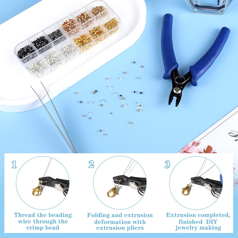 【تأتي مع 4 قطع أدوات】تأتي مع 1 كماشة تجعيد مريحة، وسلك خرز بطول 82 قدمًا قوي ومتين، وملاقط واحد وفتاحة أدوات حلقة القفز. أنها مريحة بالنسبة لك DIY بها بنفسك.