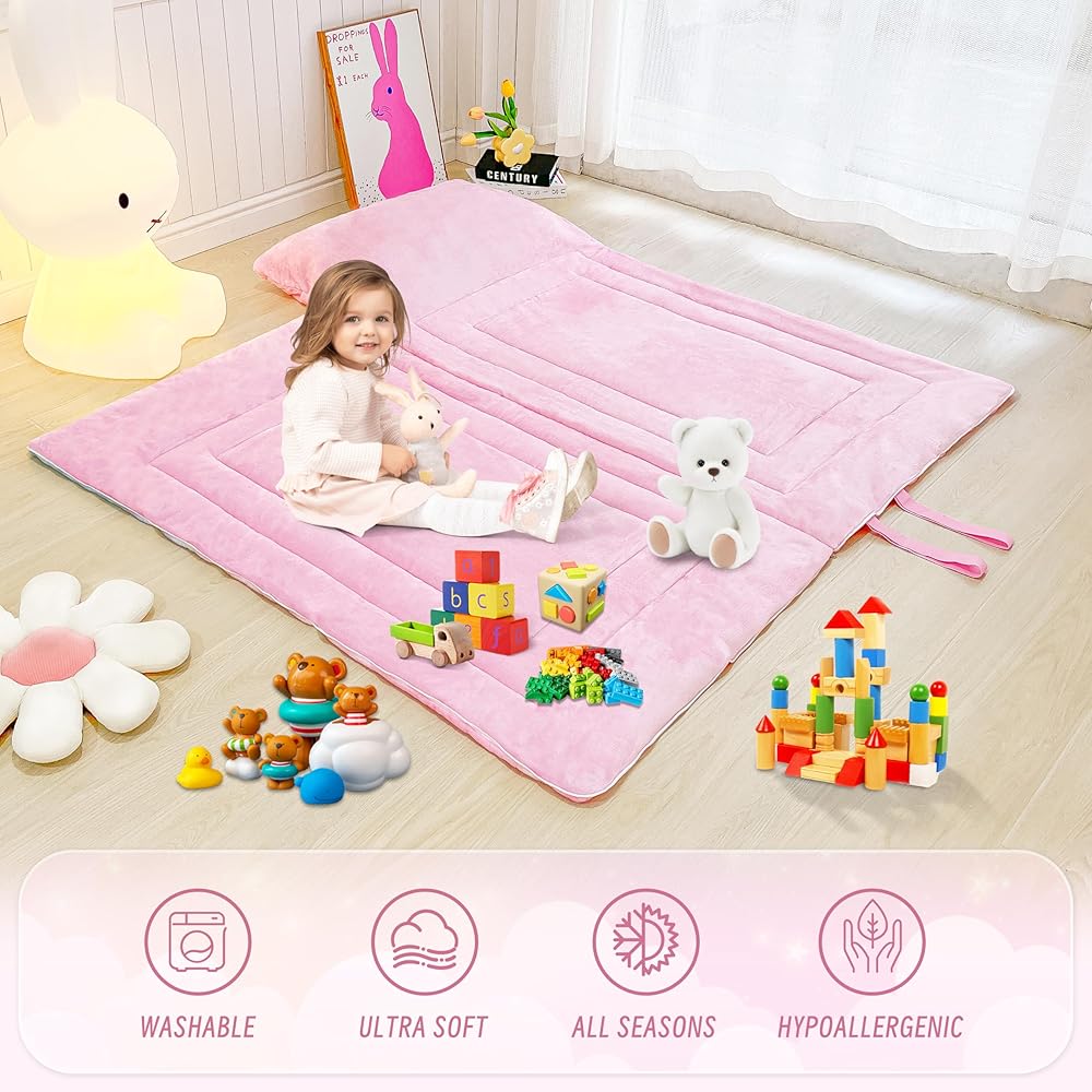 حقيبة نوم للأطفال على شكل وحيد القرن وردي للفتيات حقيبة نوم على شكل نجمة قوس قزح زهرية ناعمة من الصوف المخملي لغرف النوم في الرعاية النهارية، سجادات نوم للأطفال الصغار المحمولة مع حقيبة حمل