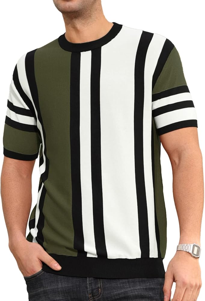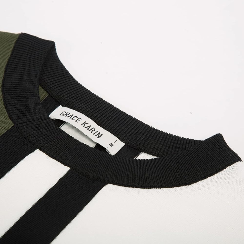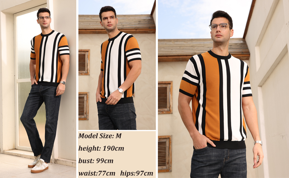 السمات: رقبة دائرية، نمط مخطط، كم قصير، مادة حياكة ناعمة، ياقة وأساور أكمام مضلعة، نمط كاجوال. تمدد عالي، لا يوجد حبوب ولا تجاعيد