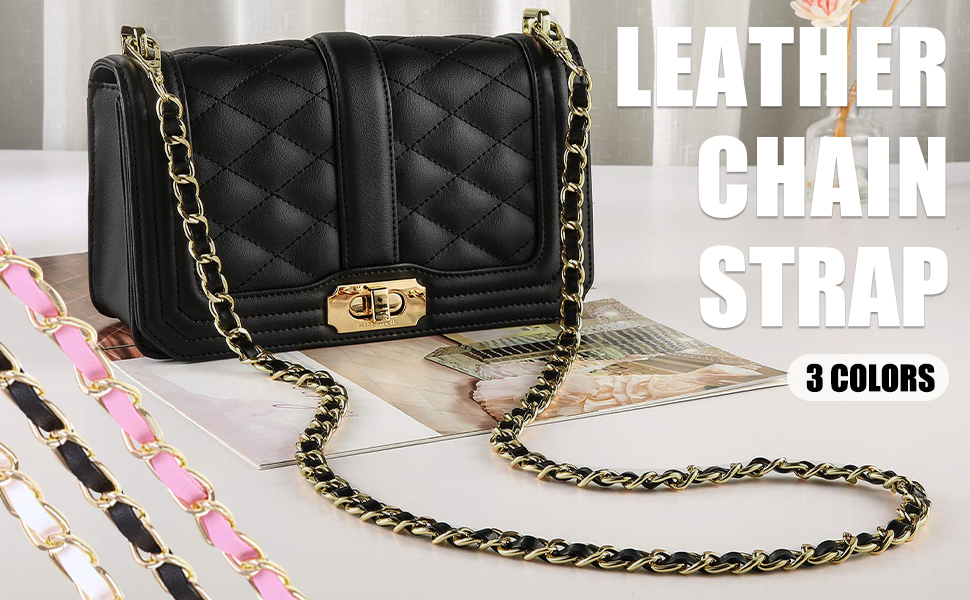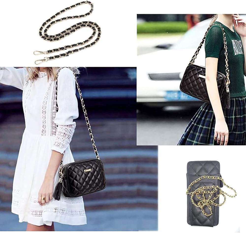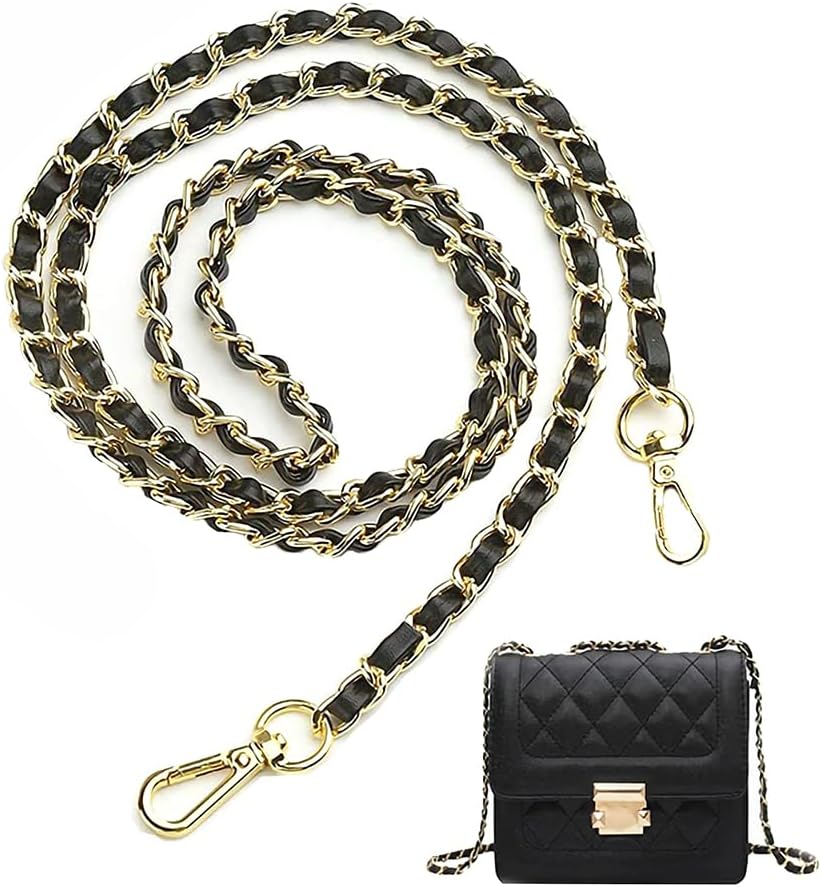 محفظة WOLAIYE بأشرطة سلسلة ذهبية من الجلد المنسوج لحقيبة المحفظة وحقائب الكتف عبر الجسم وحزام حقيبة بديلة (أسود)