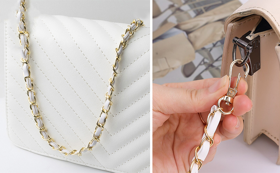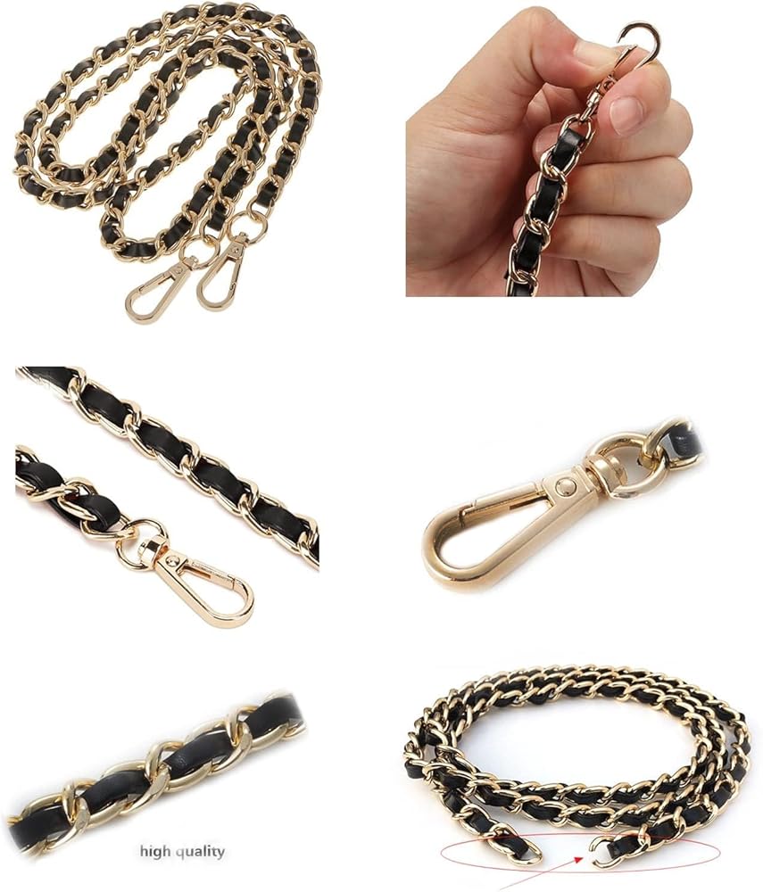 • سلسلة الحقيبة الذهبية هذه هي حزام بديل مثالي أو مقبض للحقيبة التي تصنعها بنفسك، مثل حقائب اليد والقابض والحقائب التي تمر بالجسم وما إلى ذلك.
