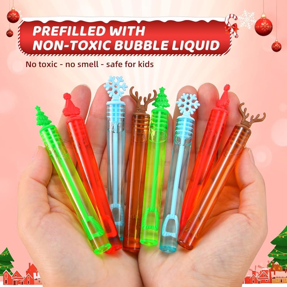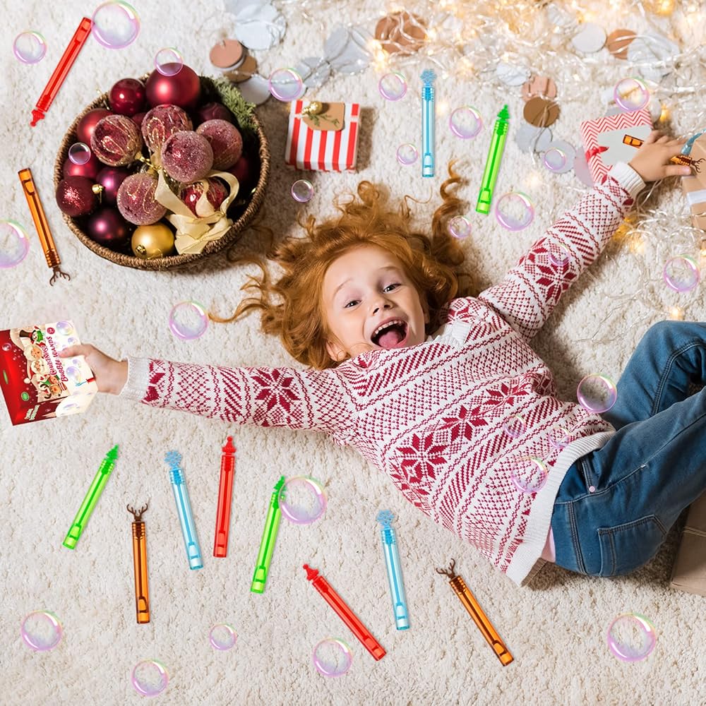 60 حزمة من عصي فقاعات عيد الميلاد، ألعاب فقاعات صغيرة لحفلات عيد الميلاد، لوازم مبتكرة، ألعاب عيد الميلاد للفتيات والأولاد والأطفال ومكافآت حشو الجورب في الفصول الدراسية