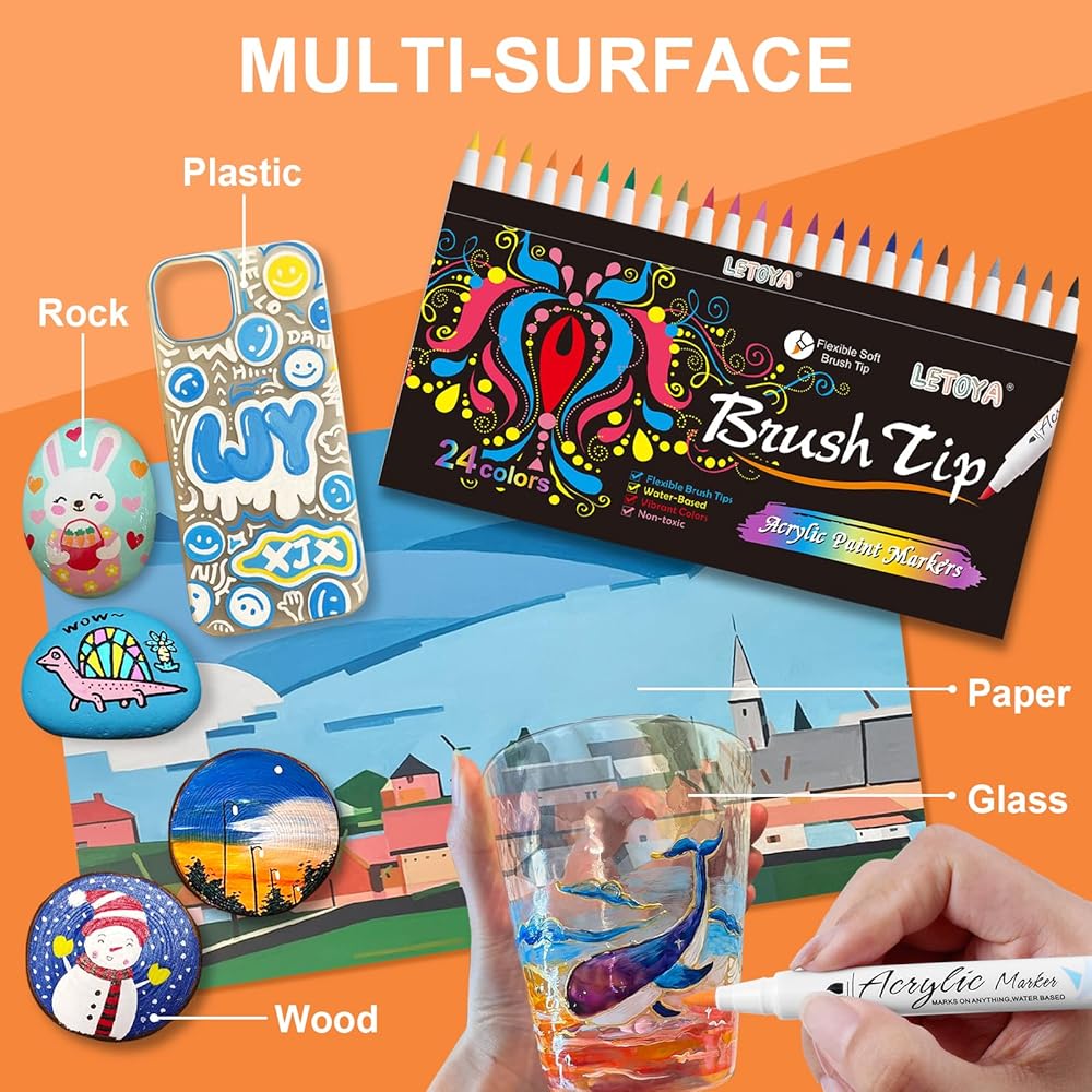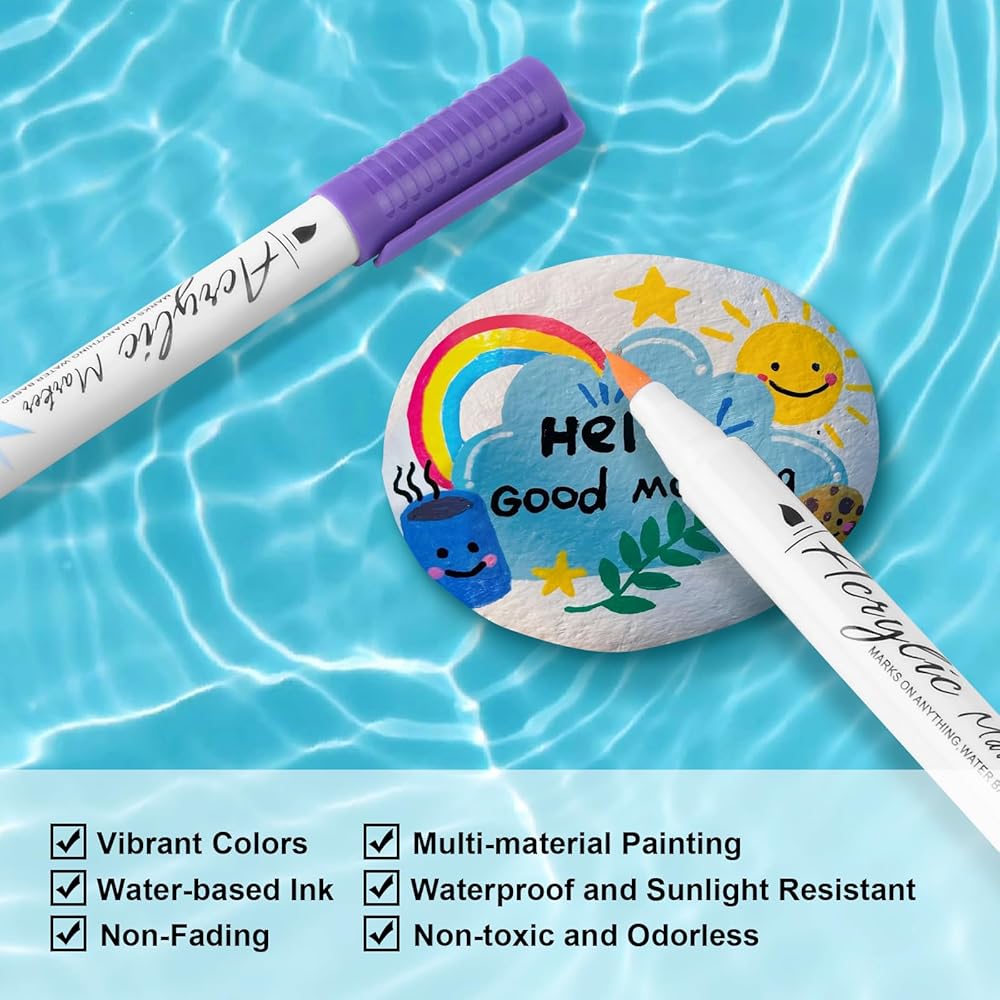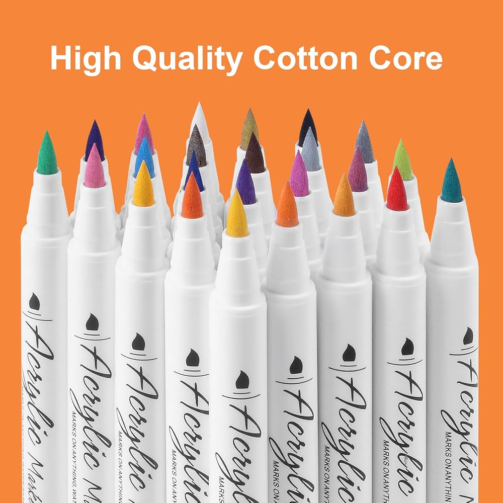 【24 لونًا نابضًا بالحياة ومقاومًا للبهتان】اغمري نفسك في عالم من الألوان الزاهية مع أقلام الطلاء الأكريليك الخاصة بنا. كل قلم مملوء بحبر عالي الجودة وغني بالأصباغ يوفر ألوانًا نابضة بالحياة تدوم طويلاً. سواء كنت تعمل على لوحات أو رسوم توضيحية أو حرف يدوية، فإن الألوان الرائعة ستضفي الحيوية على أعمالك الفنية وستظل نابضة بالحياة مع مرور الوقت.