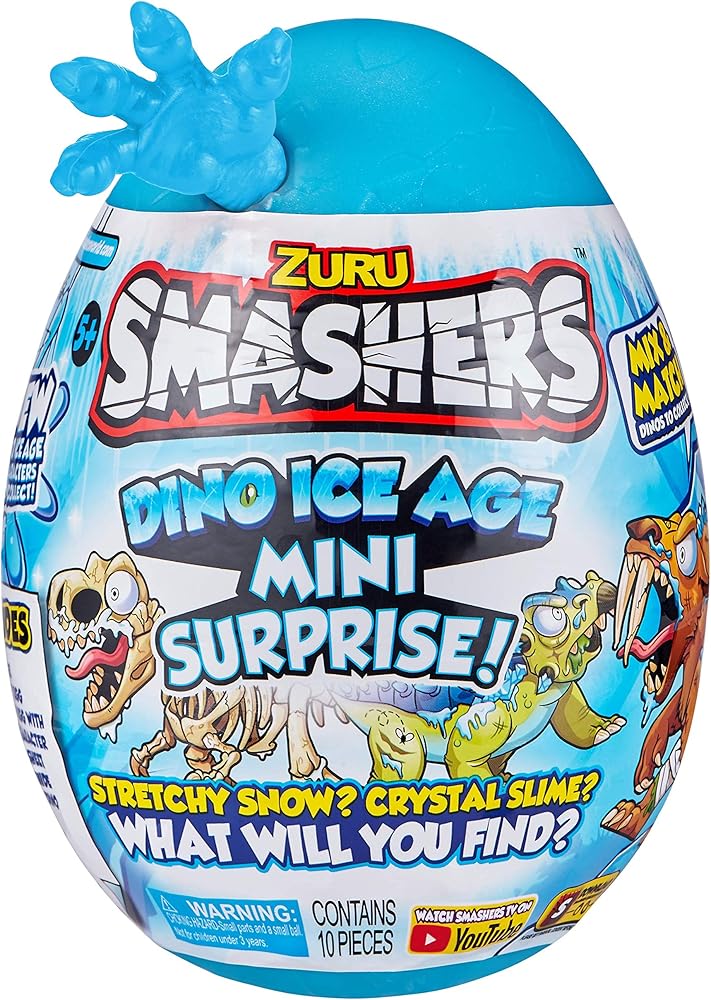 سماشرز دينو آيس إيج ميني مفاجئة البيض: اكسر الجليد مع مفاجأة دينو آيس إيج ميني الجديدة! قم بتمزيق وخدش وتمزيق المركبات الجديدة تمامًا مثل Stretchy Snow للعثور على ما بداخلها. قم بخلط ومطابقة ما يصل إلى 6 شخصيات دينو مختلفة لإنشاء إبداعك المجمد! يمكنك الوصول إلى المزيد من منتجات Smashers مثل Dino Ice Age Surprise Egg و8 عبوات! يمكنك العثور على شخصيات نادرة ونادرة جدًا مثل Blizzard Bear. قم بتحطيم بيض Smash Eggs المجمد الخاص بك على الأرض أو على الحائط أو في أي مكان يمكنك التفكير فيه وابدأ في بناء مجموعة Dino Ice Age Smashers الخاصة بك اليوم! تابع مجموعتك الكاملة من خلال دليل التجميع المجاني الخاص بنا داخل كل حزمة أو قم بتنزيل تطبيق Smashers! يتيح لك تطبيق Smashers التفاعل مع مجموعتك وكسب نقاط Smash لتصبح بطل Smashers النهائي!