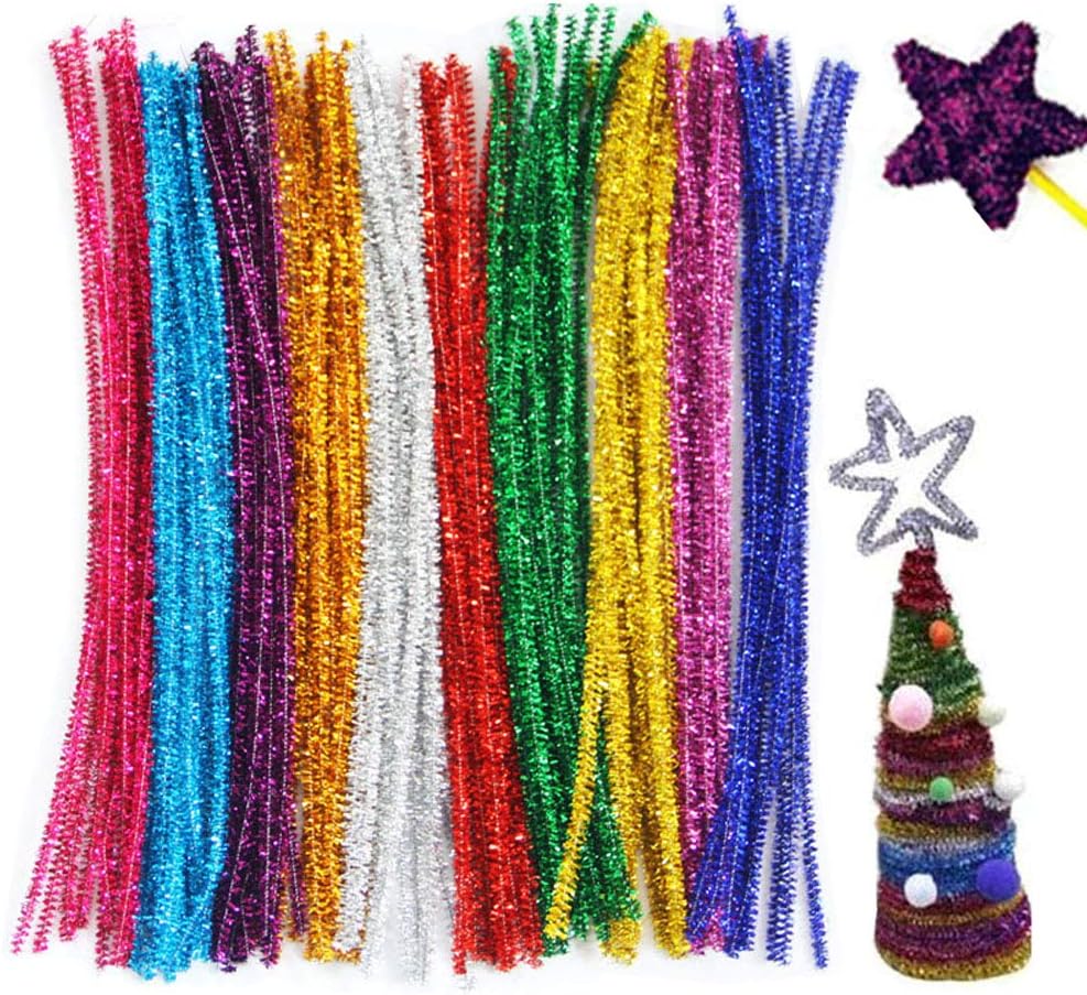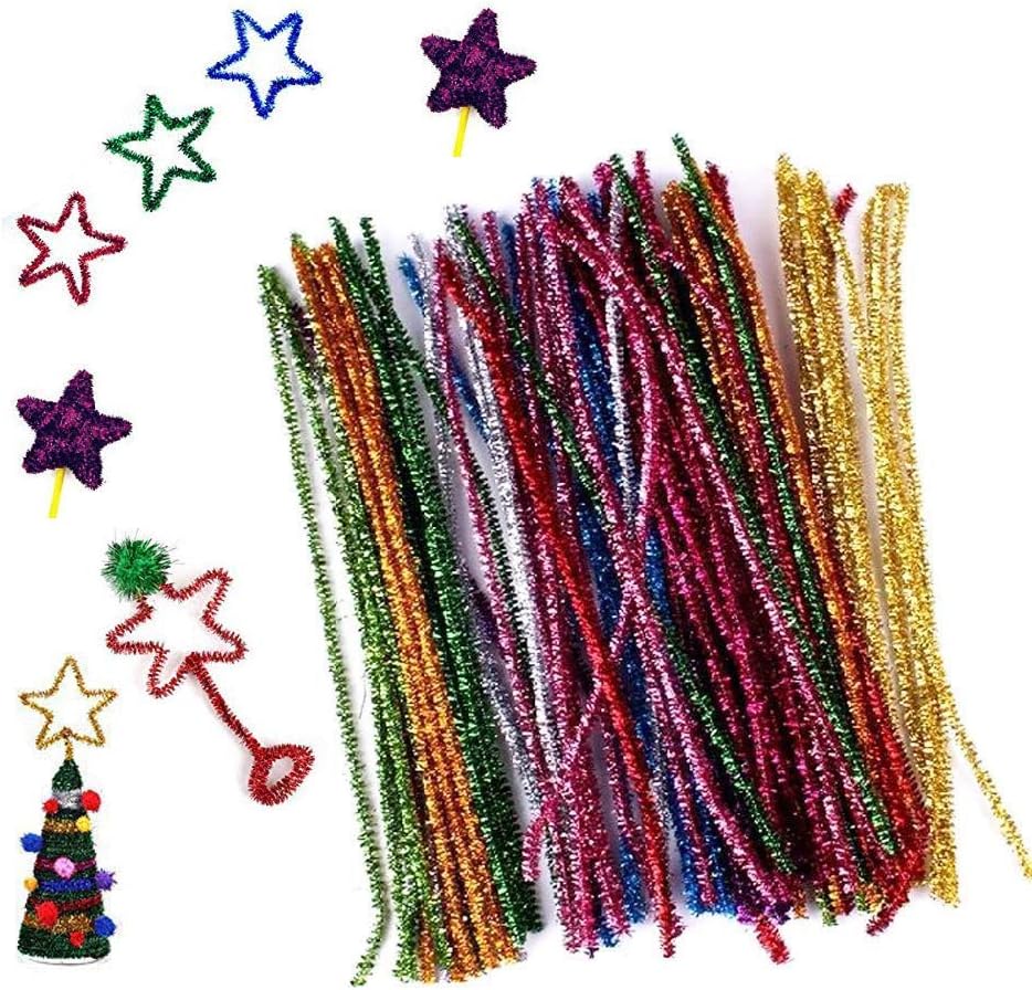 300 قطعة لامعة الأنابيب كلينرز تينسل سيقان الشانيل، 10 ألوان معدنية للأنابيب منظف للحرف اليدوية، الفنون، الزفاف، المنزل، الحفلات، تزيين العطلات 6 مم × 12 بوصة