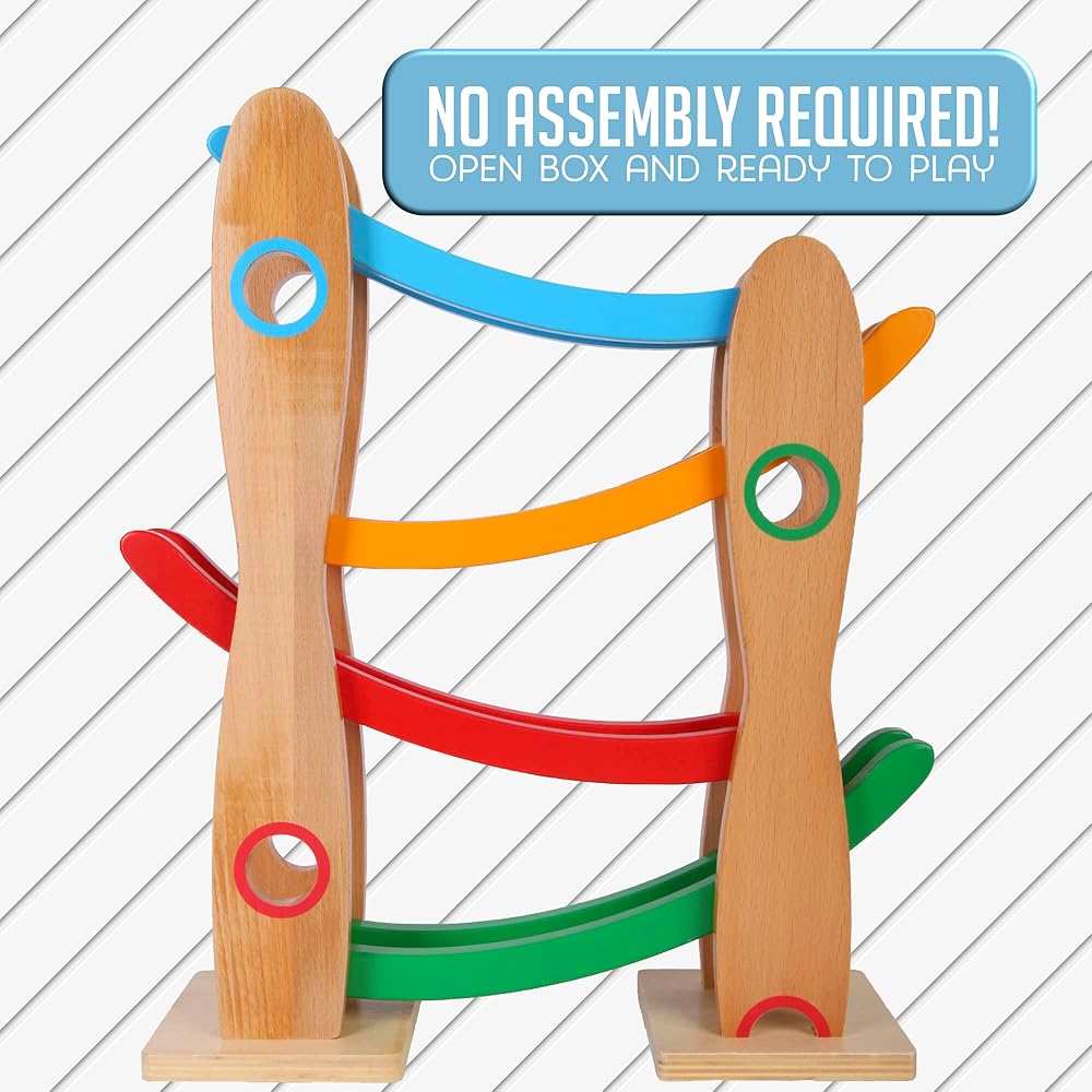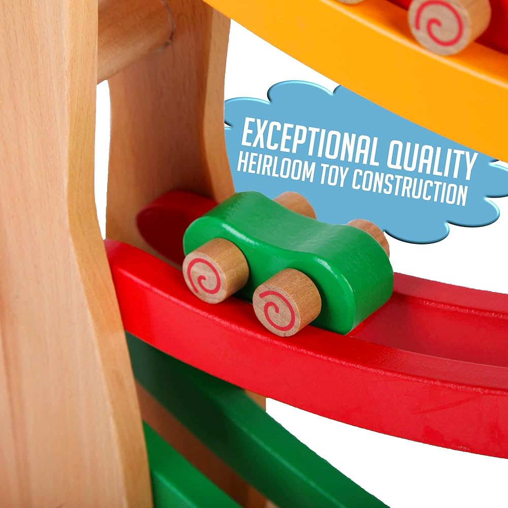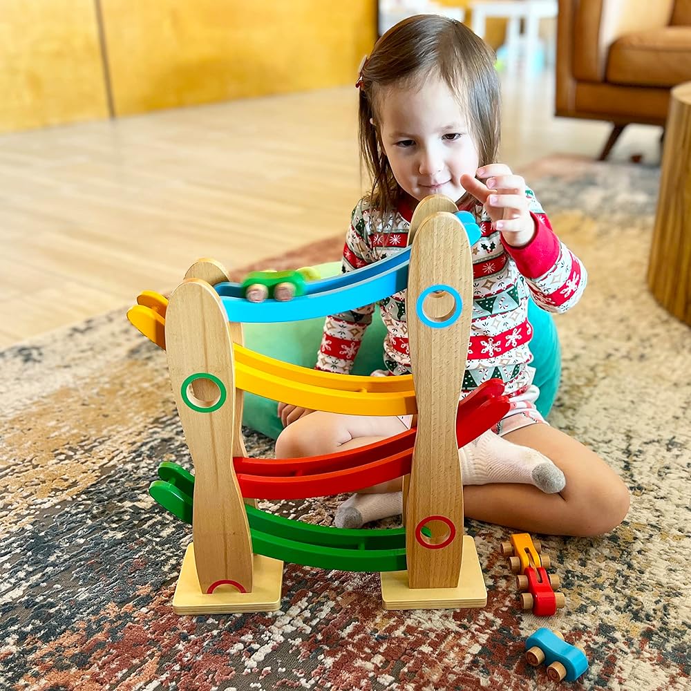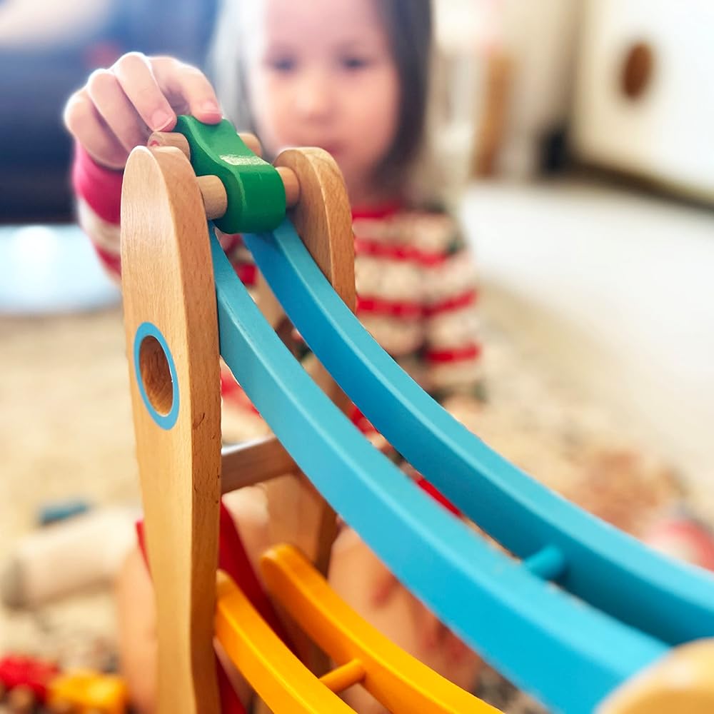 Introducing our Wooden Race Ramp - a beautifully designed, educational cars mini racers toy that combines the timeless charm of wooden toys with the thrill of a high-speed race. Ideal for children aged 18 months and up, this toy is designed to inspire countless hours of fun while promoting cognitive development. Our Wooden Race Ramp is expertly crafted from high-quality, solid wood. This ensures not just longevity but also an eco-friendly alternative to plastic toys. The wood's natural grain, polished to a smooth finish, gives it a delightful tactile feel that kids will love. At the heart of the Montessori Mama philosophy is a focus on education through play. This toy offers an engaging, hands-on way for your little one to explore scientific concepts such as gravity, speed, and cause and effect relationships. It's perfect for stimulating their curiosity, developing fine motor skills and hand-eye coordination, and encouraging independent play. The Wooden Race Ramp features a charming, kid-friendly design with bright, cheerful colours that are sure to captivate your child. With its smooth, rounded edges and non-toxic finishes, you can rest assured knowing your child's safety is our top priority. The set comes with three vibrant racing cars. The track itself is fully assembled and ready to play with right out of the box. Just drop a car at the top, and it's off to the races! One of the delights of the Montessori Mama Wooden Race Ramp is that it makes an exquisite gift. Each race ramp arrives in an elegantly designed, premium box. Whether you're celebrating a birthday, a holiday, or simply want to surprise your little one with a just-because gift, our Wooden Race Ramp is sure to bring joy to their faces. And to make your gift even more special, we offer gift-wrapping and messaging services at checkout. Note: Adult supervision is recommended during play. As with all toys, reguarly check for any signs of wear and remove the toy if damage is found.