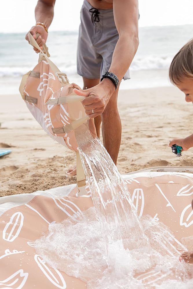 من السهل الاسترخاء مع كتاب جيد وتناول كوكتيل على الشاطئ مع العلم أن أطفالك يلعبون بسعادة على الشاطئ، في حمام السباحة الصغير الخاص بهم. ما يجعل هذا المسبح مميزًا هو التصميم متعدد الوظائف الذي يمكن أن يتحول إلى بطانية شاطئ حيث يمكنك أنت وعائلتك الاسترخاء وقضاء وقت ممتع معًا. مصنوعة من قماش عالي التحمل، بطانية الشاطئ هذه مقاومة للماء والبقع ومتينة، وقد تم تصميمها لتدوم لأيام شاطئ ممتعة لا تعد ولا تحصى. تتميز بطانية الشاطئ الخاصة بنا بنمط فريد، مصمم خصيصًا من قبل فنانينا حتى تتمكن من ترك انطباع من خلال بيئة لعب ممتعة وجذابة على الشاطئ.