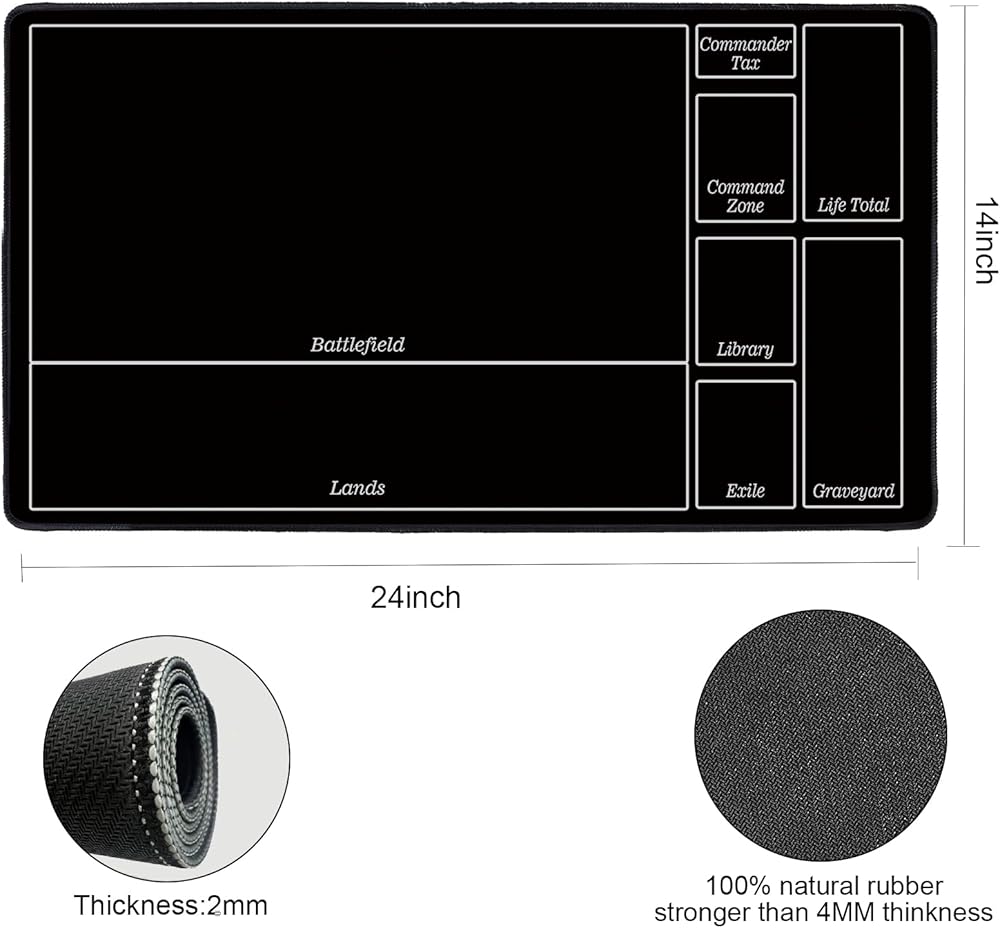 تنظيم مجالك: تساعد حصيرة اللعب MTG على الحفاظ على بطاقاتك السحرية نظيفة وتعزز تجربة اللعب الخاصة بك، مما يجعلك تشعر وكأنك لاعب محترف. إنها مناسبة لكل من اللاعبين المبتدئين وذوي الخبرة، بما في ذلك أولئك الذين يستخدمون Spelltable للعب عبر الإنترنت.
