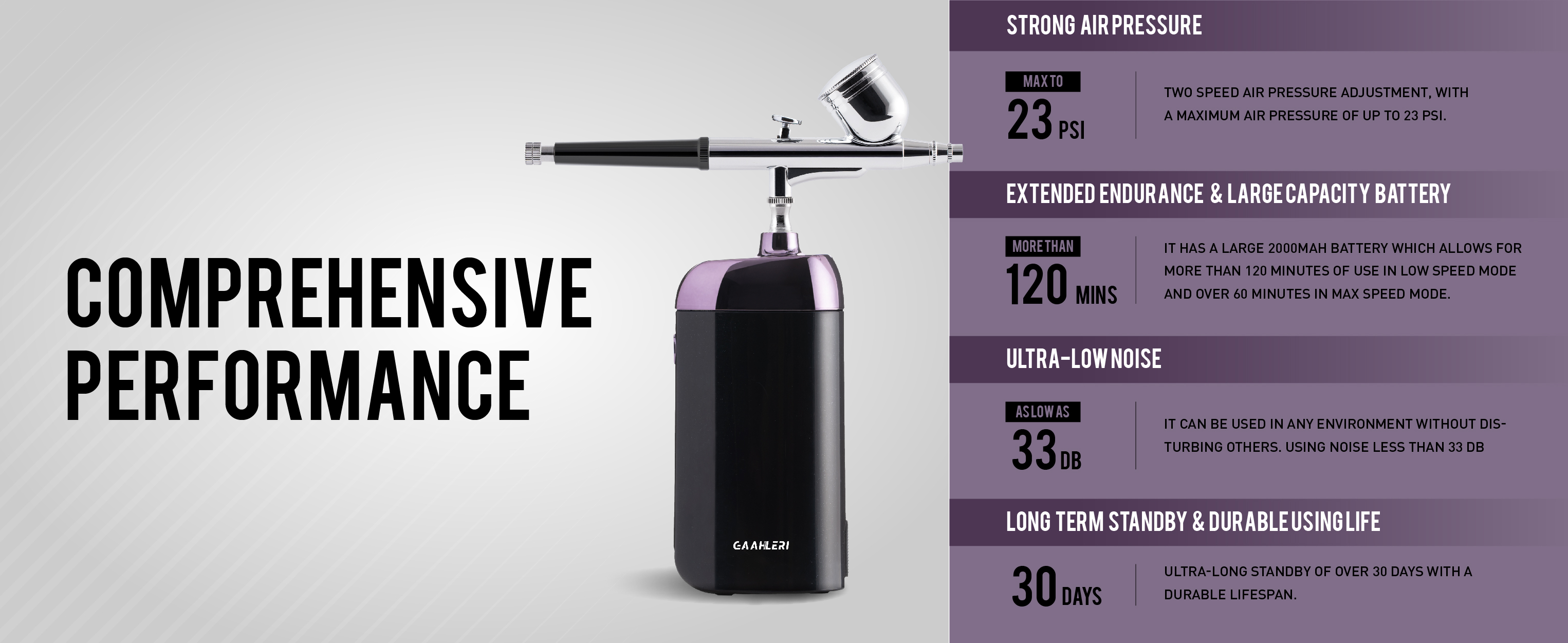 تأتي مجموعة طلاء البخاخة اللاسلكية المحمولة باليد من جاهليري مع مسدس رش مزدوج المفعول، وهو أبسط طريقة للقيام بأعمال الطلاء. التصميم اللاسلكي يجعل الرسم أو المكياج أسهل على أي مبتدئ في تنظيف المهام الصغيرة، مثل: المكياج، تزيين الكعك، الحلاق، تلوين النماذج، العناية بالوجه أو طلاء الأظافر، طلاء الجسم المؤقت، طلاء الأحذية أو القمصان وما إلى ذلك.