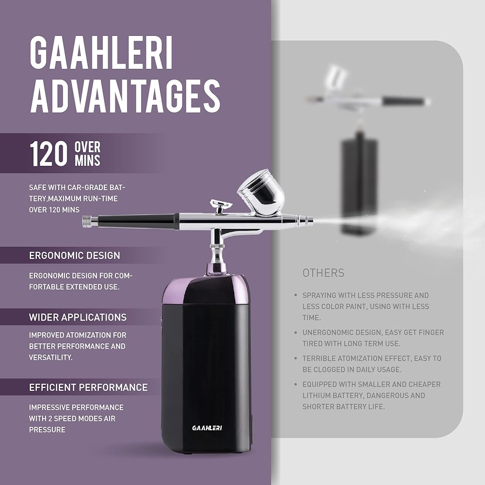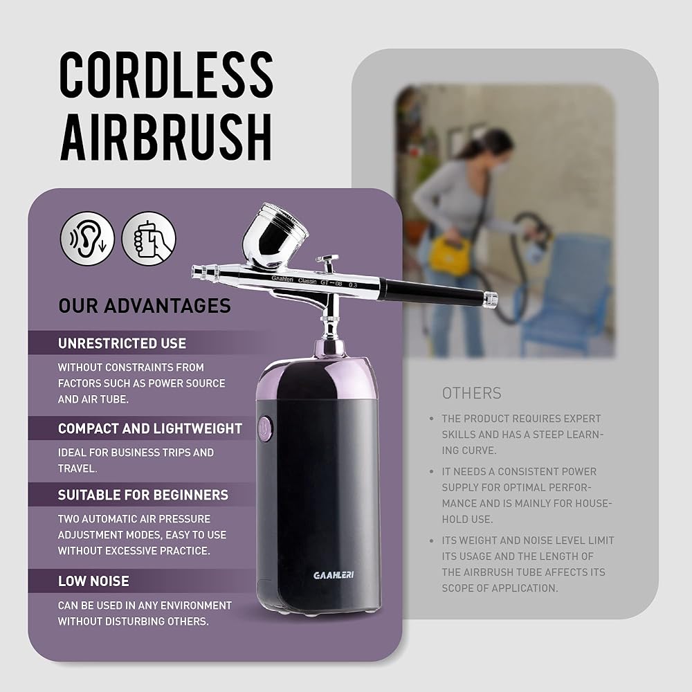[استخدام غير مقيد ومتعدد الوظائف] مجموعة البخاخة اللاسلكية المحمولة باليد من جاهليري متعددة الاستخدامات وتوفر استخدامًا غير مقيد. التصميم المدمج لمجموعة ضاغط البخاخة سيثير إعجابك. على عكس مجموعات البخاخة السلكية التقليدية، تسمح مجموعة البخاخة بمجموعة واسعة من الاستخدامات بما في ذلك المكياج وتزيين الكيك والعناية بالوجه وفن الأظافر وتلوين التيشيرتات وأكثر من ذلك، سواء في المنزل أو أثناء التنقل.