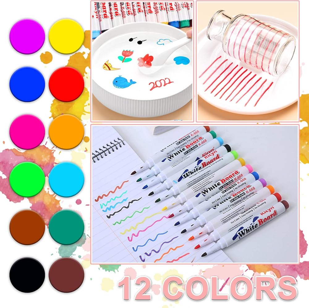 قلم رسم مائي سحري، أقلام تحديد عائمة للرسم مكونة من 12 لونًا، مجموعة أقلام رسم دودل سحرية، أقلام عائمة للمياه تمسح السبورة البيضاء، هدايا عيد ميلاد للأولاد والبنات (8) (12)
