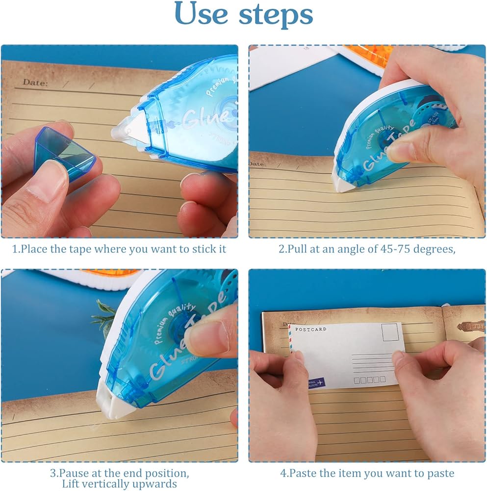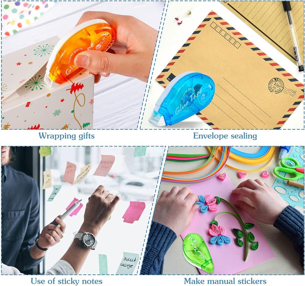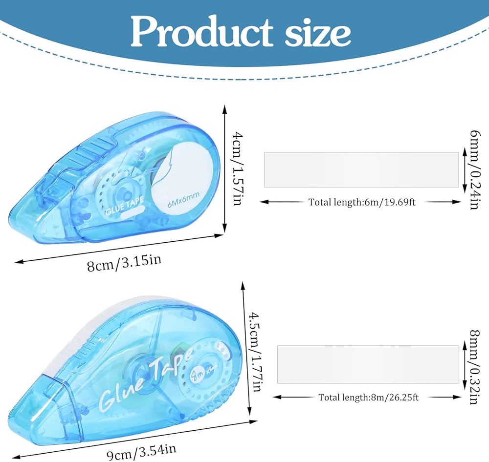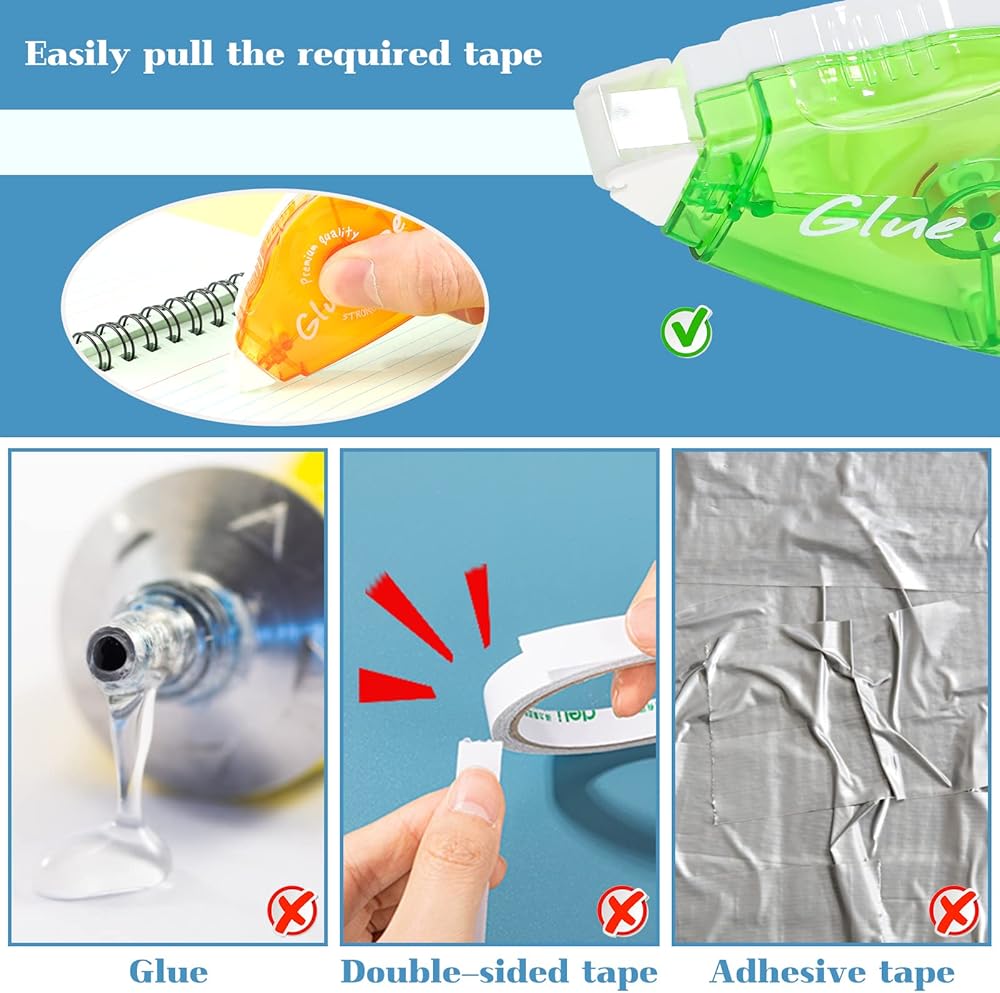 تصميم فريد: موزع شريط مزدوج الجوانب يستخدم غلاف شفاف ملون، مظهر بسيط، طريقة تطبيق من النوع الدوار، مريح ولن يلتصق بيديك، مع غطاء واقٍ، رائع وصغير الحجم، وسهل التخزين.