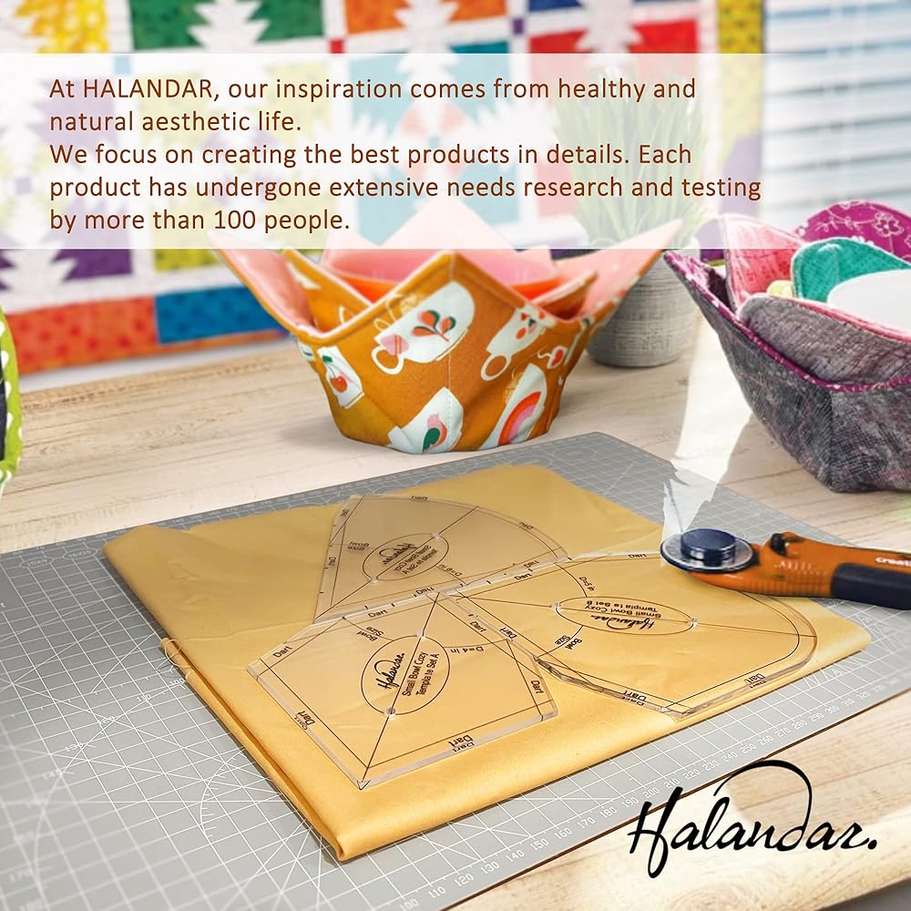 مجموعة مسطرة قطع قالب مريح من هالاندار، 3 قطع 8/10/12 بوصة من الأكريليك، قالب مسطرة خياطة اللحف مع تعليمات، 3 قلم قابل للذوبان في الماء، 15 حصيرًا غير قابل للانزلاق، 3 مقاطع لرف وعاء الطعام