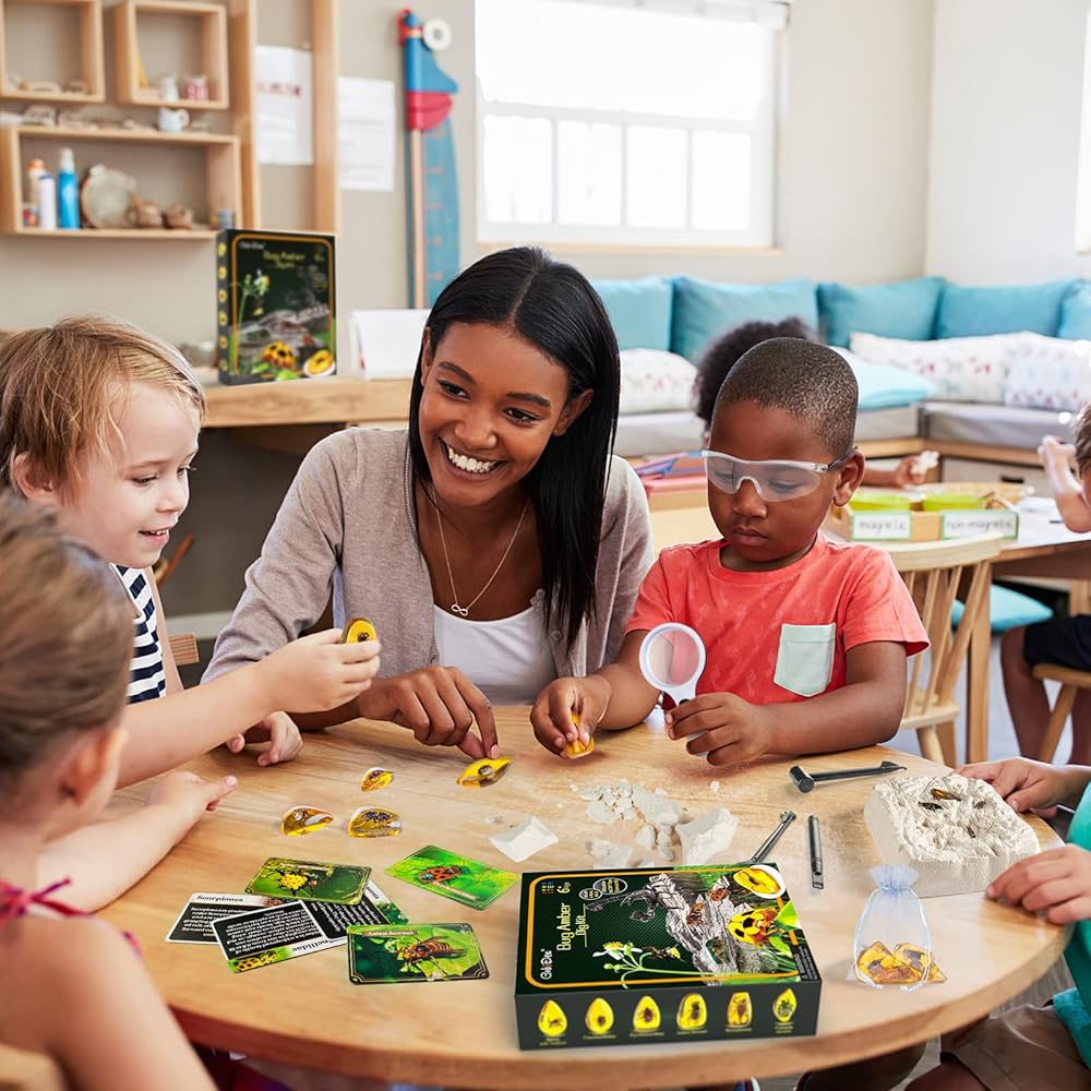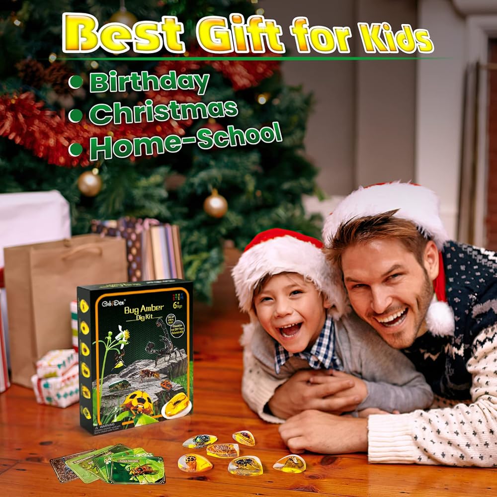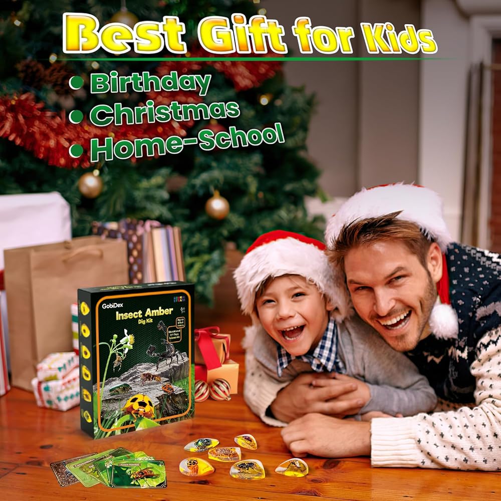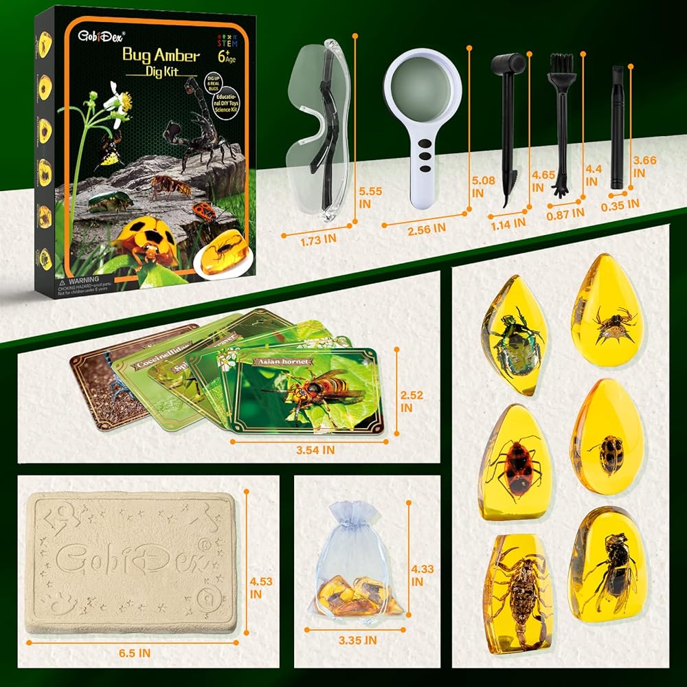 GobiDex Amber Dig Kit - راتينج الحشرات الاصطناعية، وحفر 6 عينات من الحشرات، وألعاب البق التعليمية الجغرافية الجذعية، وألعاب التنقيب من أجل هدايا الحفلات الممتعة، ومجموعات العلوم للأطفال الذين تتراوح أعمارهم بين 6-8 و8-12