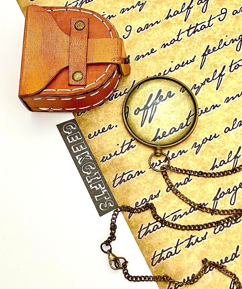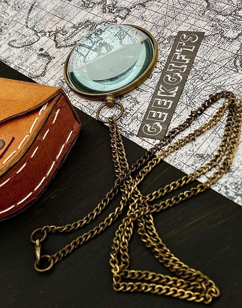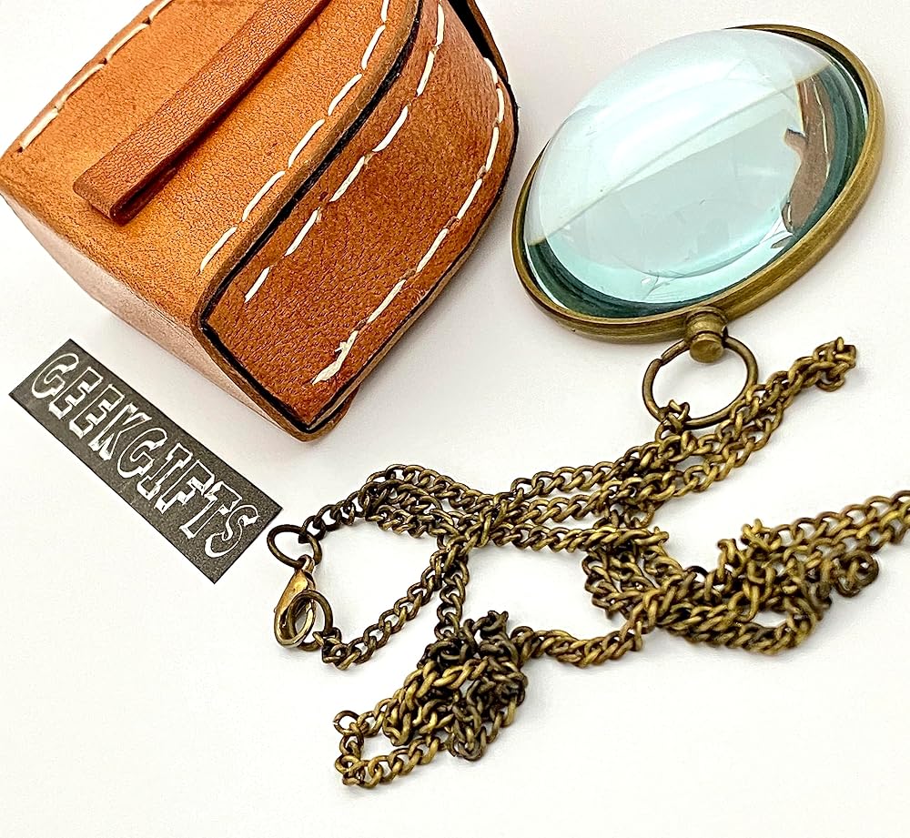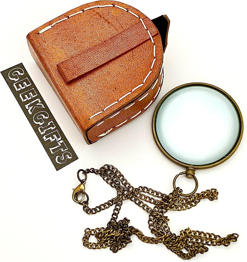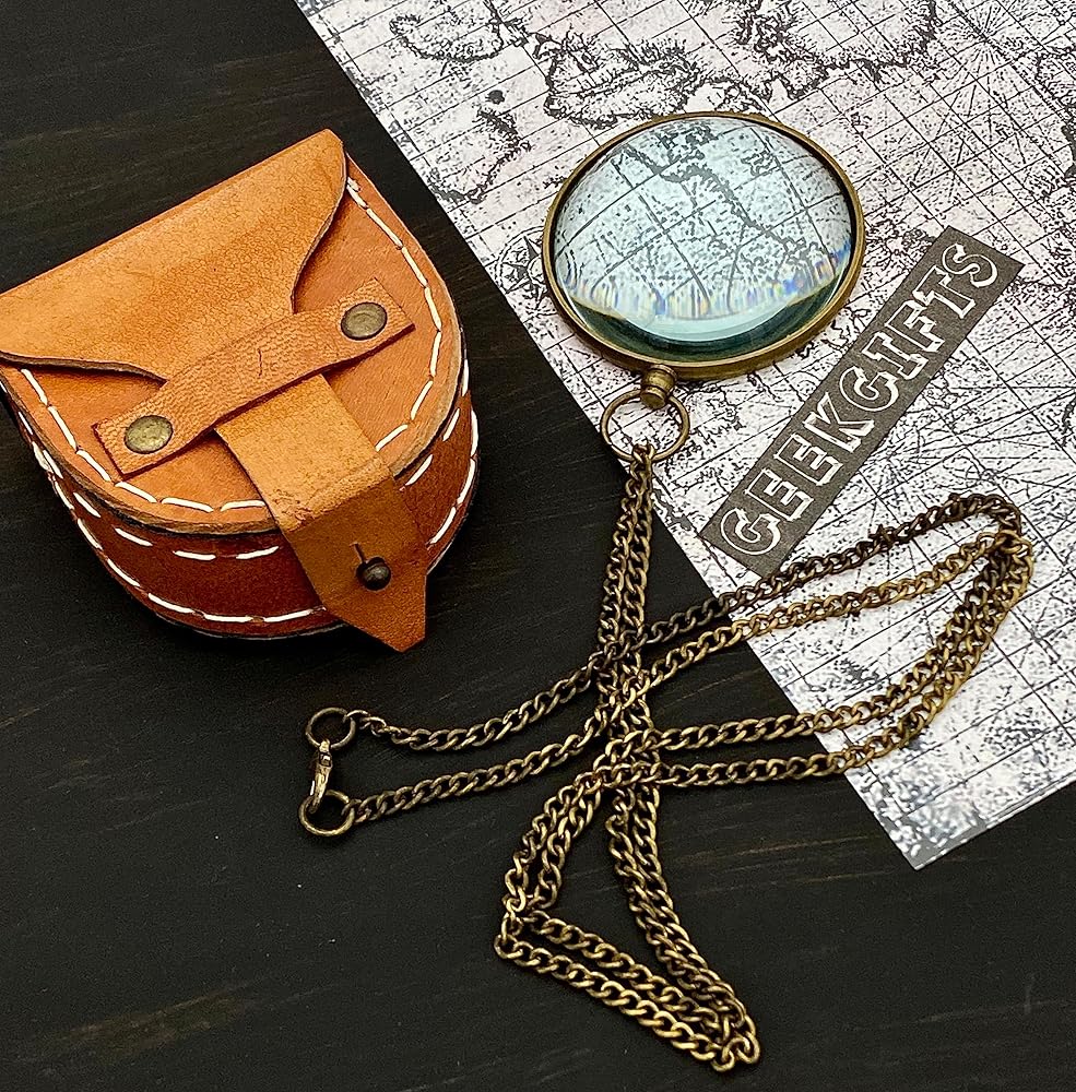 - عدسة مكبرة ريترو مع صندوق جلدي - عدسة مكبرة للجيب - هدية ستيمبنك ريترو - أحادي الجيب