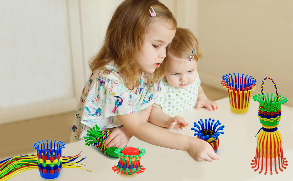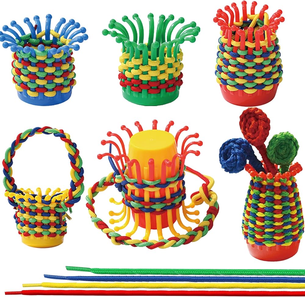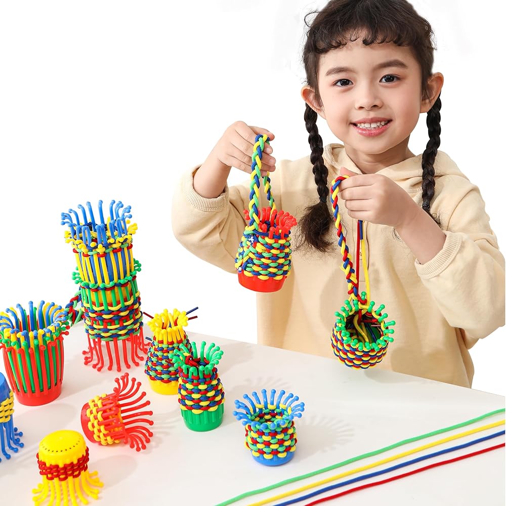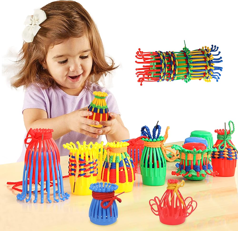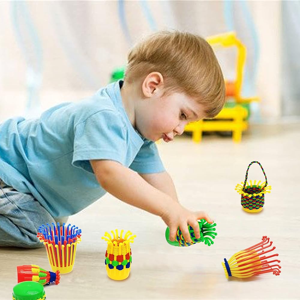 النسيج والضحك - شاهد أطفالك يطورون مهاراتهم الحركية الدقيقة بينما ينسجون الأربطة الملونة من خلال السلال القابلة للانحناء. ابتكر عالمًا مرحًا من الأشكال مع مجموعة نسج سلة الأطفال الخاصة بنا!