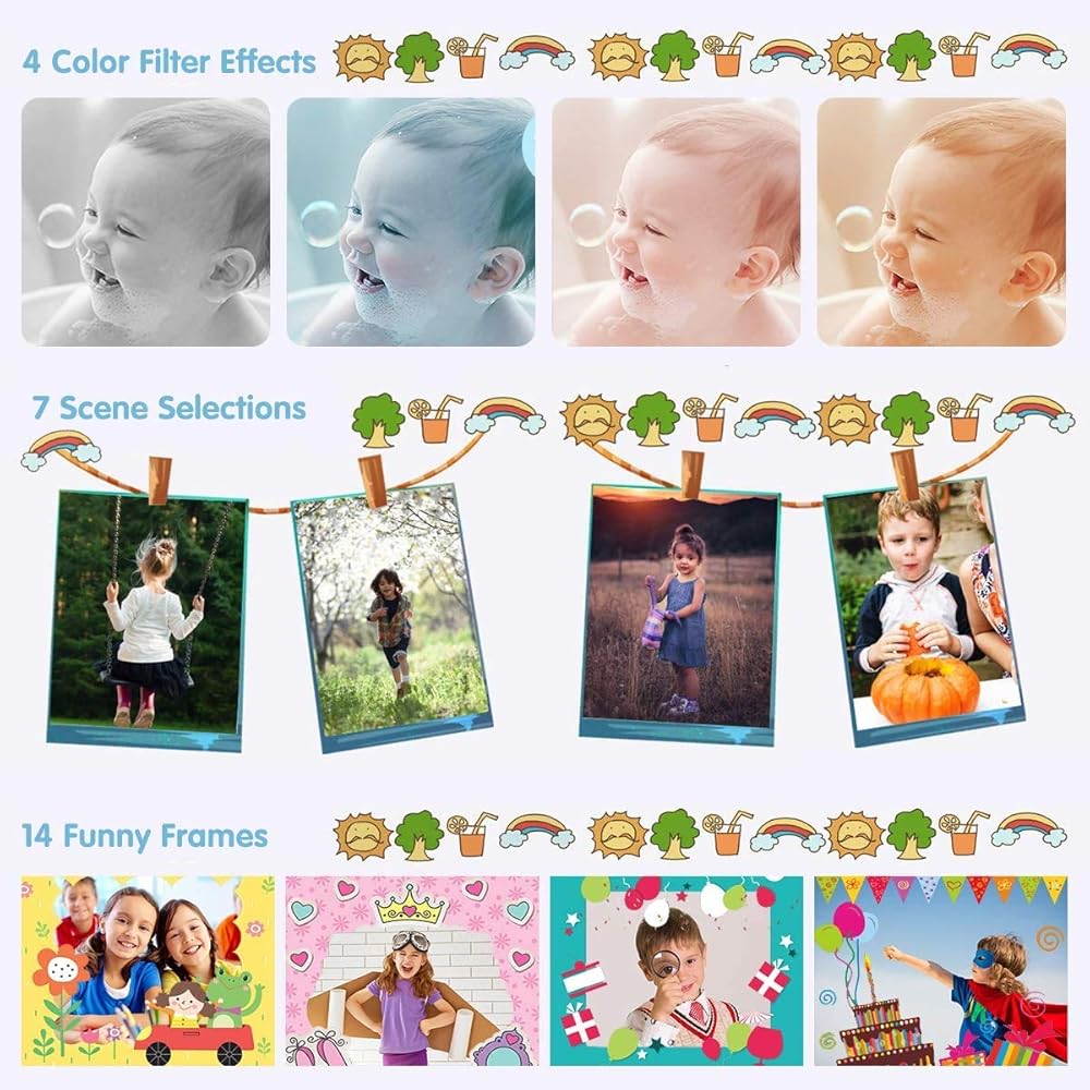 الميزات الرئيسية والوظائف المتعددة: يمكن للأطفال التقاط صور أو مقاطع فيديو جميلة لتسجيل اللحظة الرائعة. هناك 15 خلفية لإطارات الصور الكرتونية اللطيفة، و3 تأثيرات للصور، و6 مرشحات كلاسيكية، و5 ألعاب كلاسيكية مدمجة. سيحظى الأطفال بمزيد من المتعة في التقاط الصور باستخدام مرشحات المؤثرات الخاصة. يمكنهم أيضًا لعب ألعاب الفيديو الكلاسيكية.