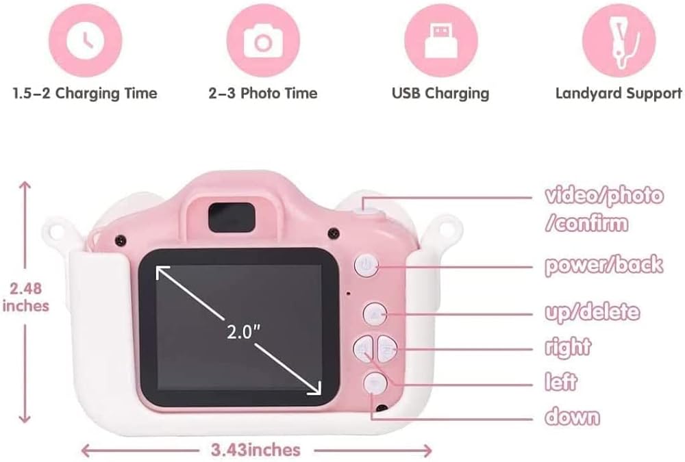 هدايا رائعة للأطفال: ستكون كاميرا الأطفال هدية رائعة للأطفال. ستحبها الفتيات! يمكن للأطفال استخدام هذا لتسجيل لحظات رائعة مع أنفسهم وأصدقائهم وعائلاتهم. كاميرا لطيفة لذاكرة حياة الطفل. تحتوي كاميرا القطط على حبل متين لسهولة الحمل مصمم خصيصًا للأطفال لتعليق الكاميرا الصغيرة على رقبتهم. يمكن للأطفال التقاط الحياة وحياة الفيديو في أي وقت وفي أي مكان. لعبة الكاميرا هذه هي لعبة جميلة هدية، هدية عيد ميلاد، هدية عيد الميلاد وهدية المهرجان.