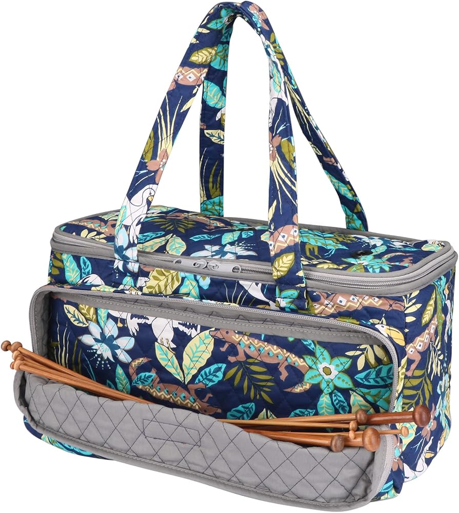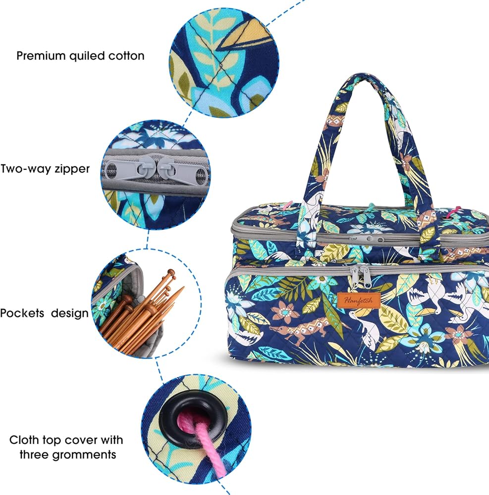 • 👜 سحّابات ثنائية الاتجاه في الأعلى تجعل من السهل وضع أعمال الحياكة والإبر داخل الحقيبة وخارجها. جيب أمامي للإبر وخطافات الكروشيه وغيرها من الملحقات