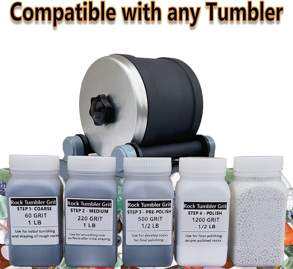 Rock Tumbler Grit Kit- 4 Steps Grit with 3mm Round Tumbling Ceramic Filler Media Non-Abrasive for Tumbling Stones Compatible with Any Brand Tumbler Stone Polisher