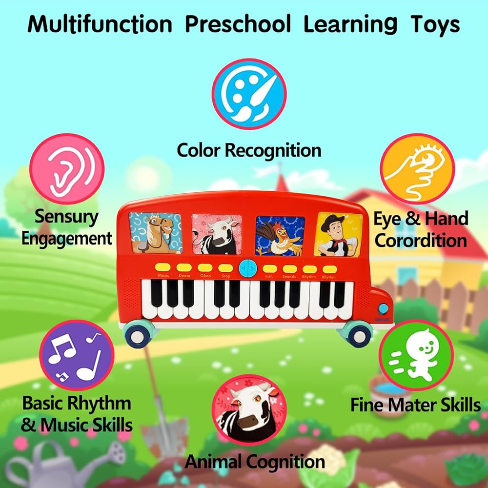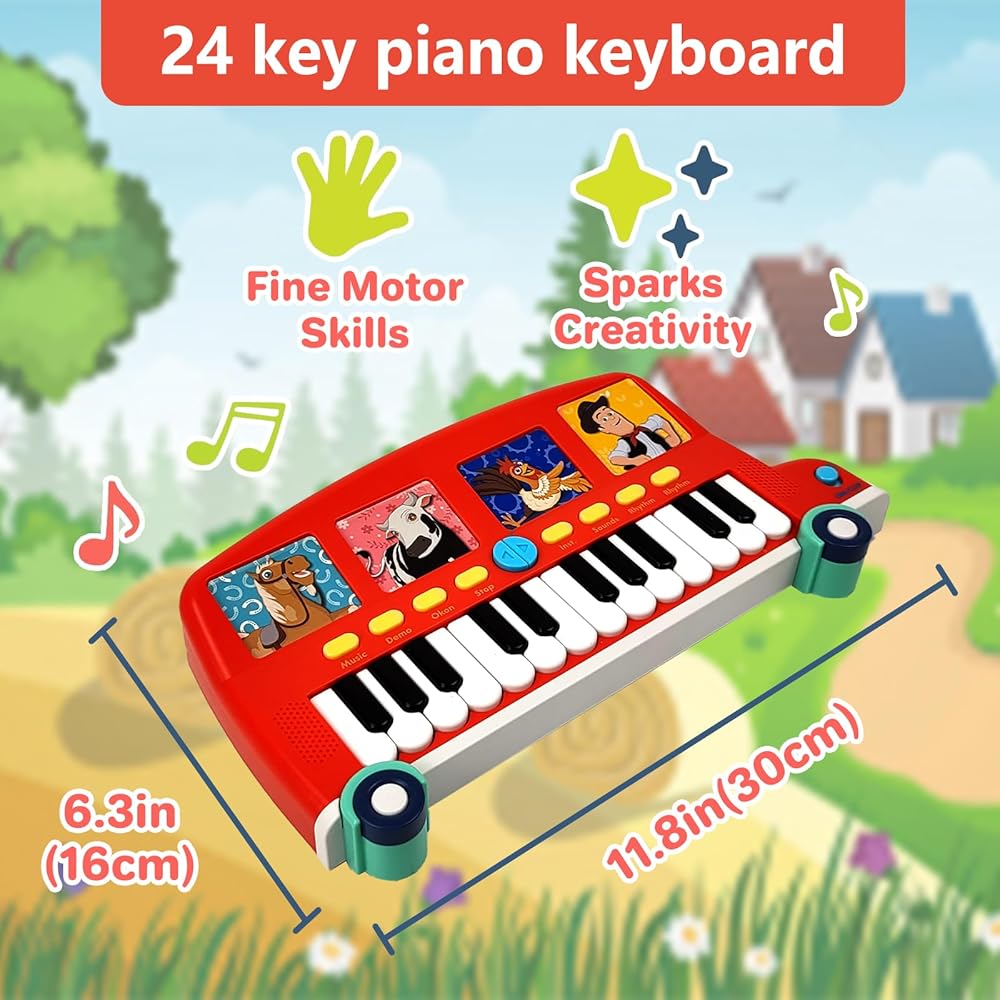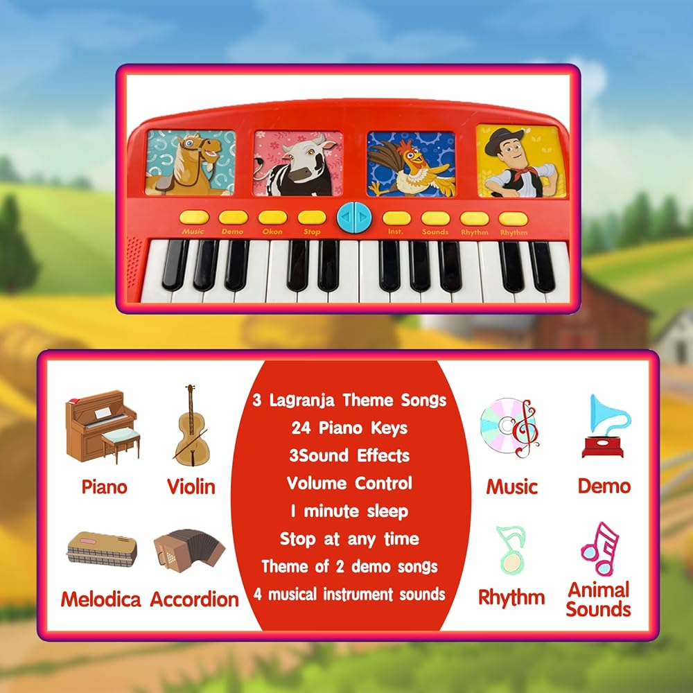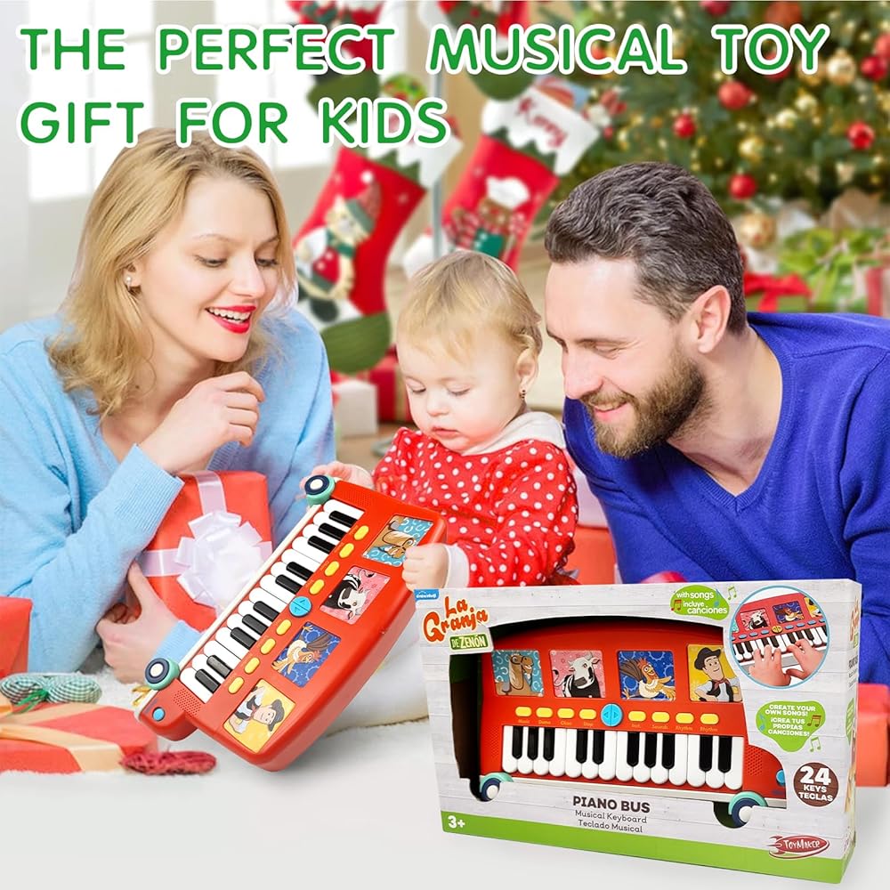 TOYMAKER La Granja De Zenon Baby Piano Toy طفل صغير بيانو La Vaca Lola ألعاب إسبانية موسيقية للأطفال الصغار 1-3 لعبة بيانو 24 مفتاحًا هدية لوحة مفاتيح للأطفال الصغار لعيد الميلاد وأعياد الميلاد للبنين والبنات
