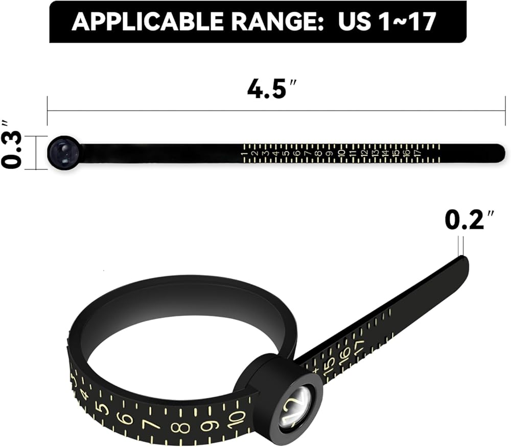 طباعة متينة: يتميز مقاس الخاتم الخاص بنا بطباعة متينة تتحمل الاستخدام المنتظم، مما يضمن بقاء القياسات واضحة ودقيقة بمرور الوقت. قل وداعًا للبقع أو العلامات الباهتة!