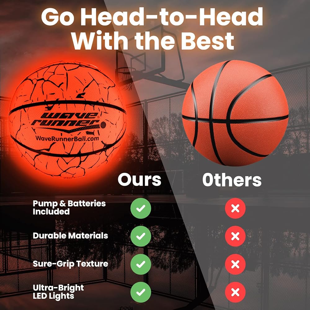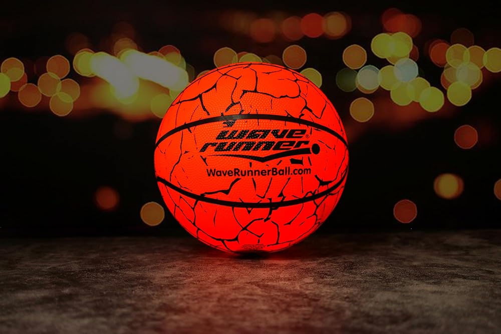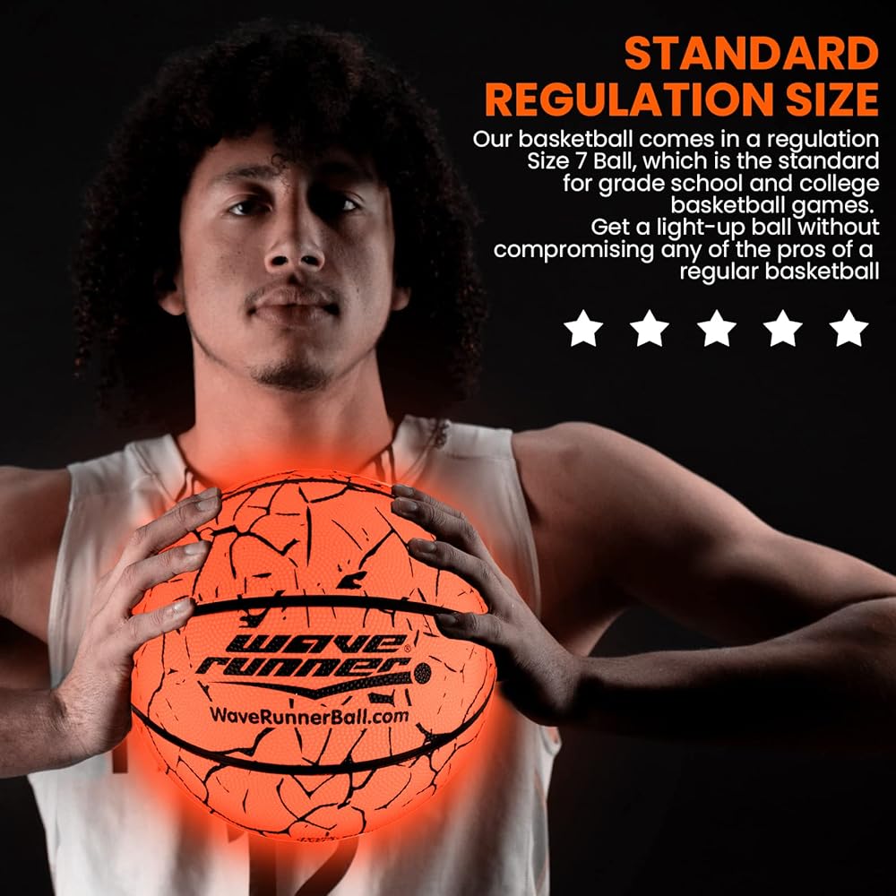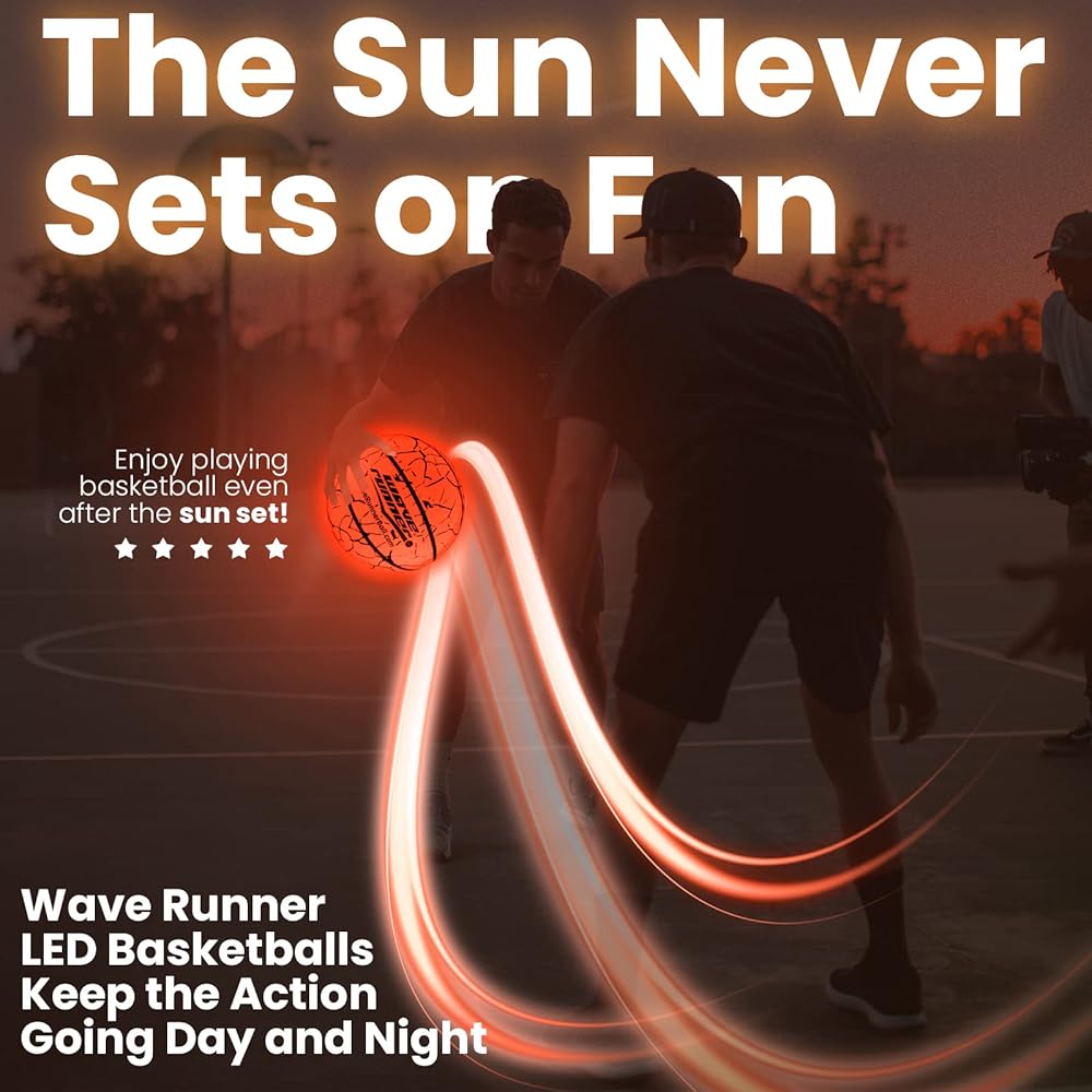 كرة السلة Wave Runner المتوهجة في الظلام - الحجم الرسمي 7 ألعاب مضيئة لألعاب الكرة الليلية، حجم التنظيم، تفعيل الصنبور - هدايا كرة السلة المتوهجة المثالية ولعبة كرة السلة لجميع الأعمار