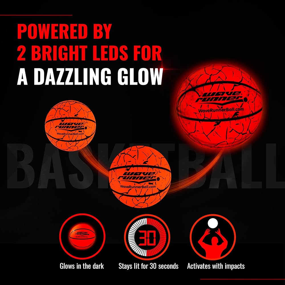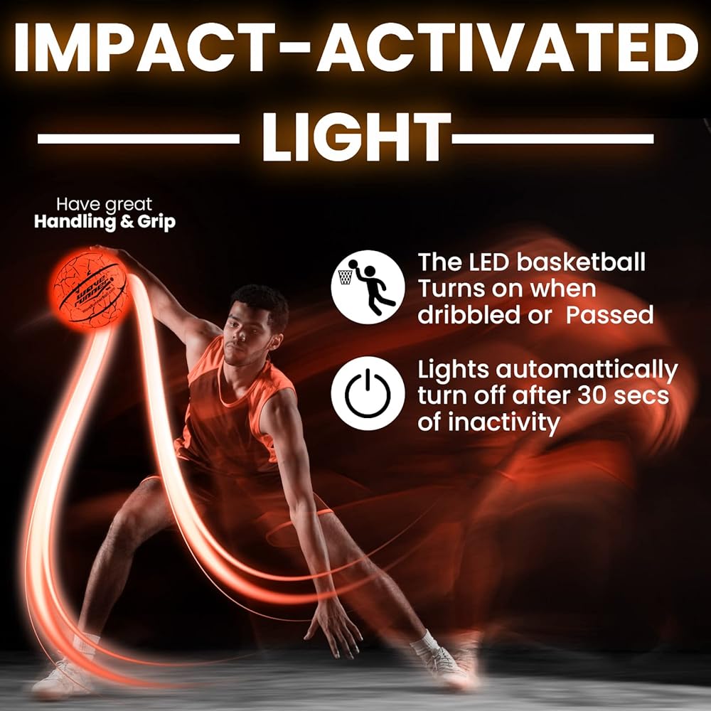 تأثير فعال: استمتع بكرة السلة المتوهجة الساطعة لأطول فترة ممكنة! ولهذا السبب قمنا بتضمين مصابيح تعمل بالصدمات والتي تضيء الكرة عندما ترتد وتغلق تلقائيًا عندما لا تكون قيد الاستخدام.