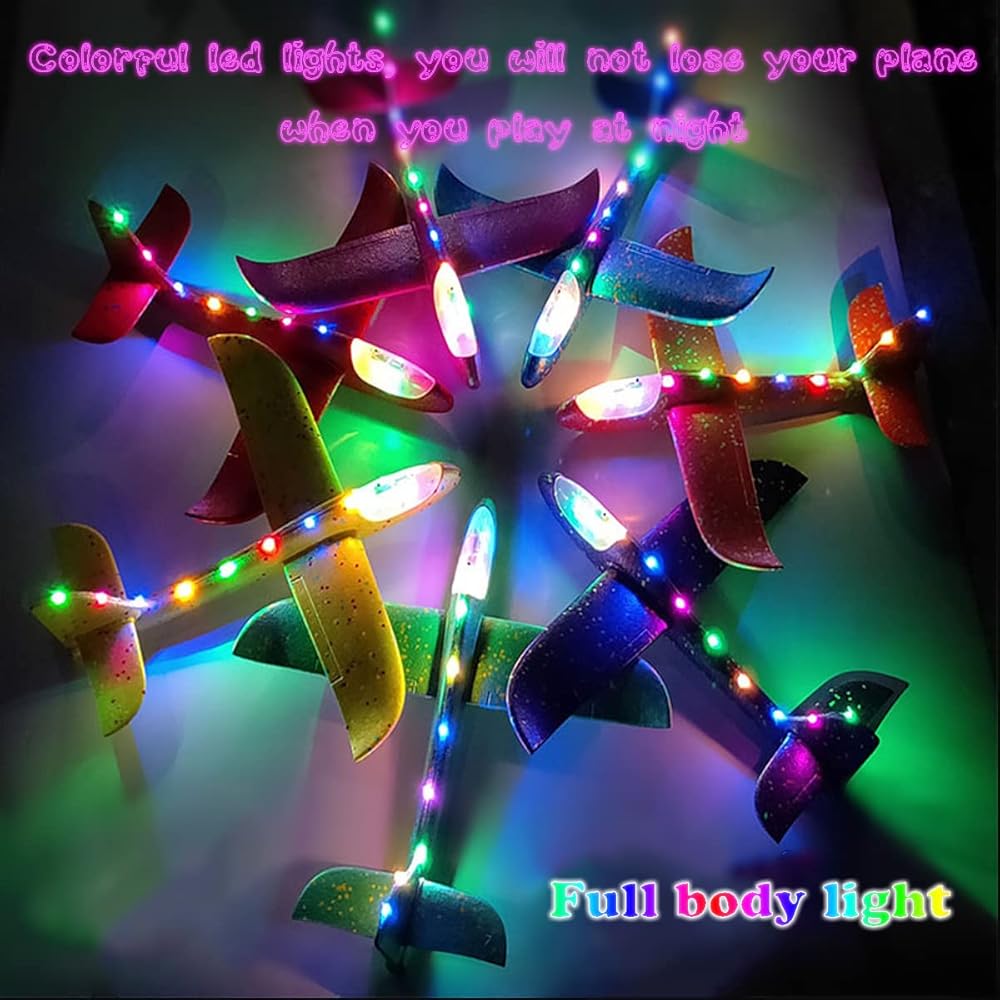 ضوء فلاش LED: رأس الطائرة مجهز بمفتاح إضاءة LED، وشريط ضوئي متصل بجسم الطائرة. اضغط على المفتاح، وسوف تضيء الطائرة بأكملها بأضواء ملونة جميلة. يمكن للطائرة اللعب أثناء النهار والليل، وتضيء الأضواء في الليل، مما يجعل من السهل العثور على الطائرة الطائرة. ملحوظة: شريط الضوء مثبت على الجسم، إذا كان فضفاضًا، يمكن تثبيته مرة أخرى بشريط.