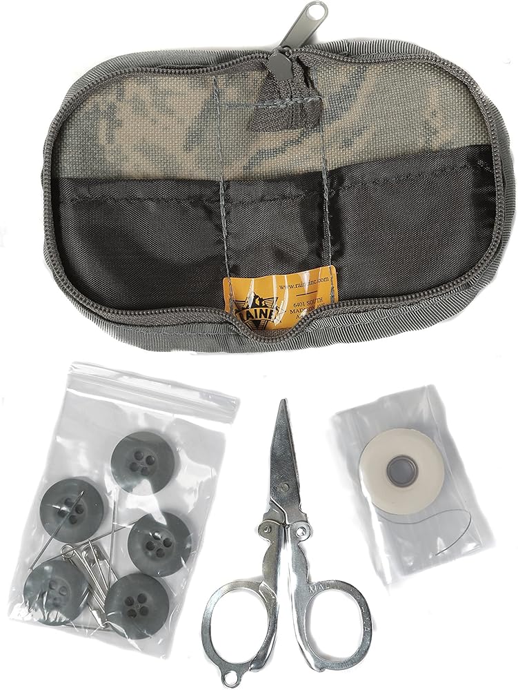 • مجموعة الخياطة التكتيكية: تأتي مجموعة الخياطة الميدانية الخاصة بنا مع أزرار عسكرية مناسبة و3 بكرات خيط كبيرة وإبر ودبابيس وزوج من المقصات القابلة للطي عالية الجودة.