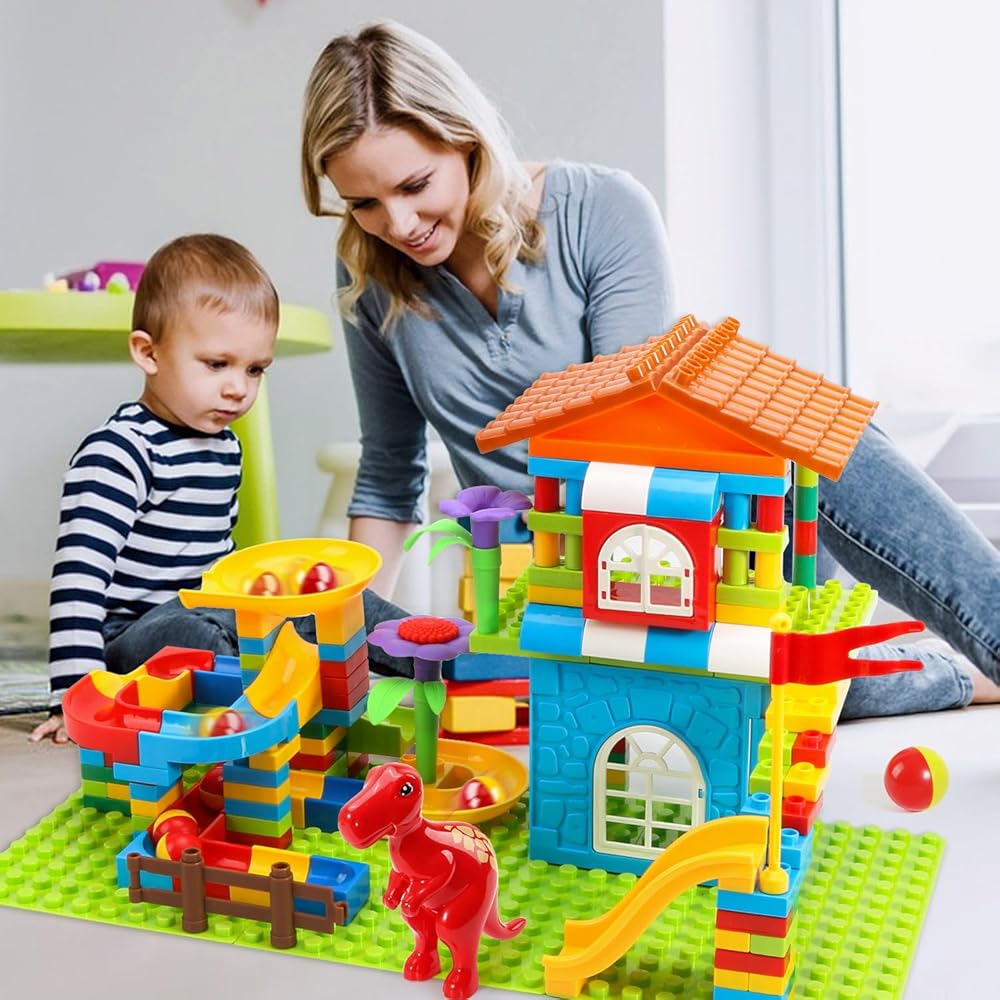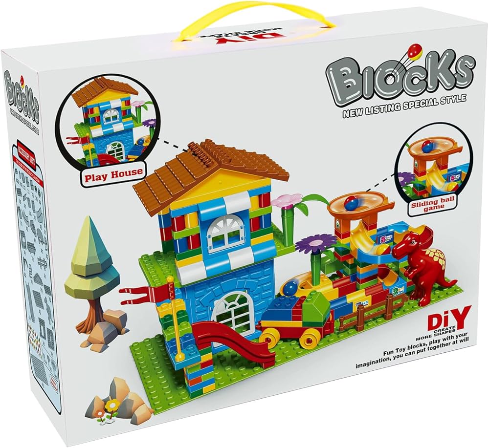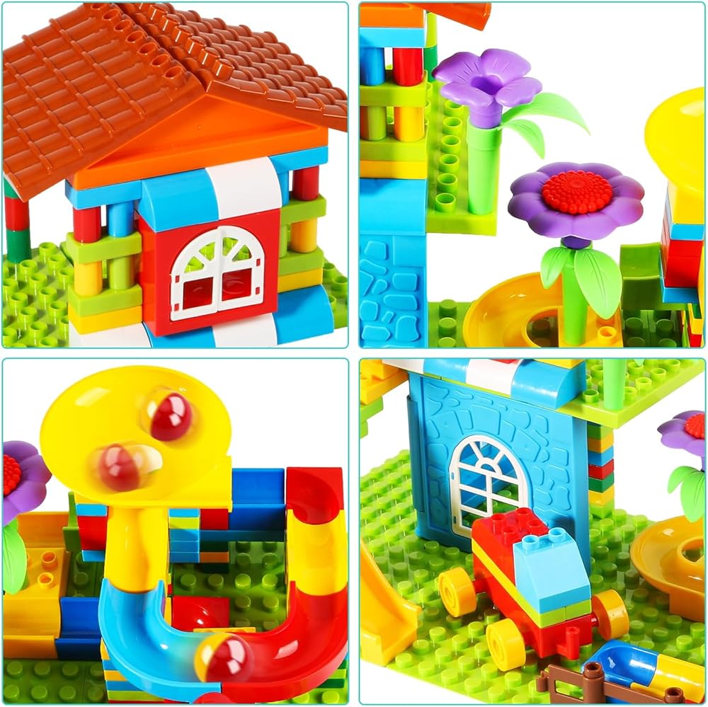 تصميم مسار رخامي متعدد المسارات - تغطي الكتل الكبيرة الكلاسيكية لدينا مجموعة متنوعة من المسارات والسلالم وكتل المنحدرات شديدة الانحدار التي يمكنها تسريع الكرة أو إبطائها، مما يوفر ساعات لا نهاية لها من المرح للأطفال.