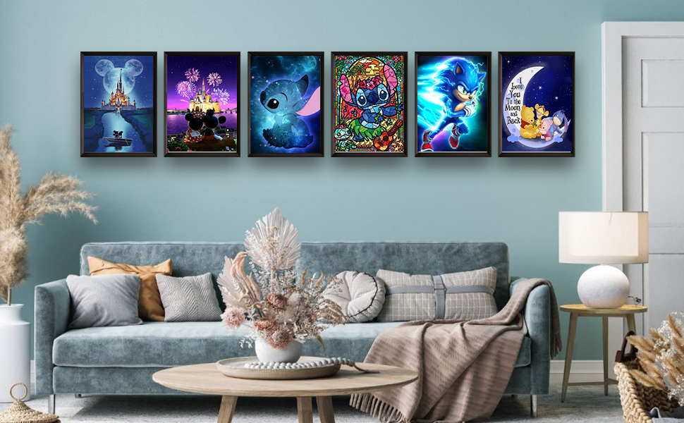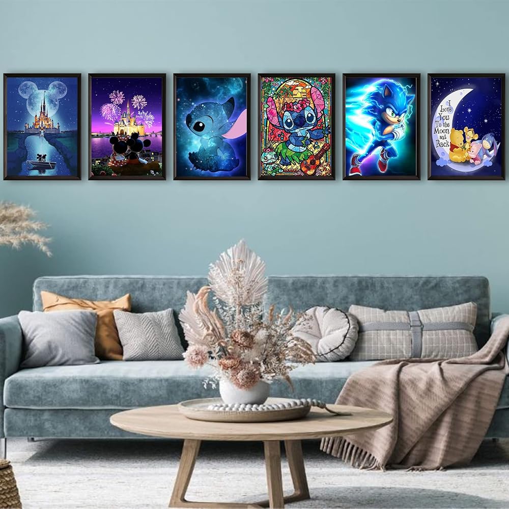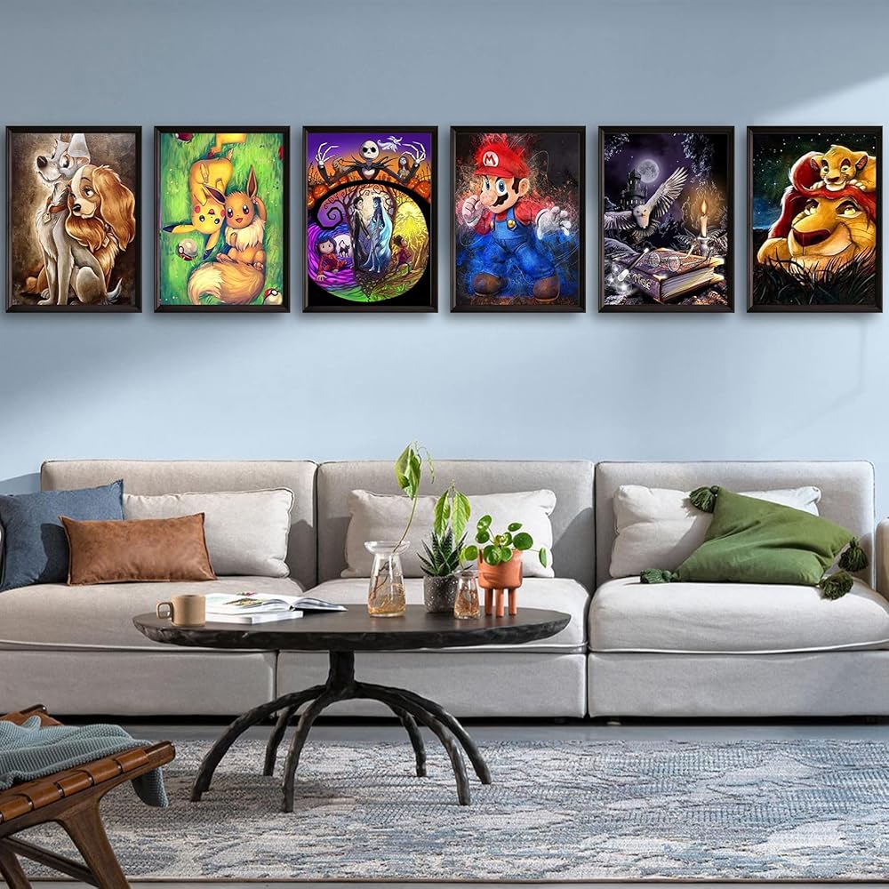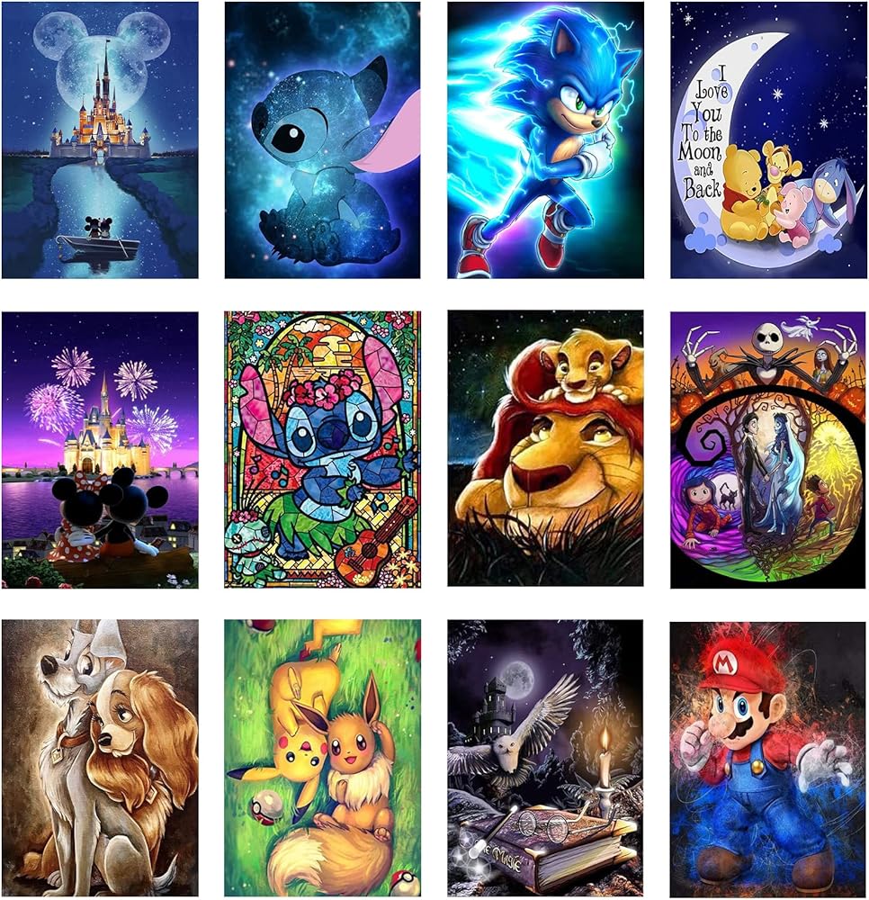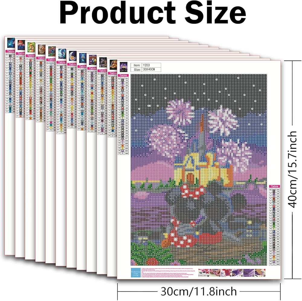 ما الذي ستحصل عليه؟ - سوف تحصل على مجموعة كاملة من 12 قطعة للرسم الماسي الكرتوني مع الملحقات والأدوات الأساسية مثل أقلام الرسم الماسي والطين والصواني البلاستيكية ذات التصميم الجديد والملاقط وأكياس السحاب. تأتي اللوحة القماشية مقاس 12 × 16 انش محملة مسبقًا بكل ما تحتاجه للرسم الماسي، وقد أضفنا 30% إضافية لكل لون من الألماس.