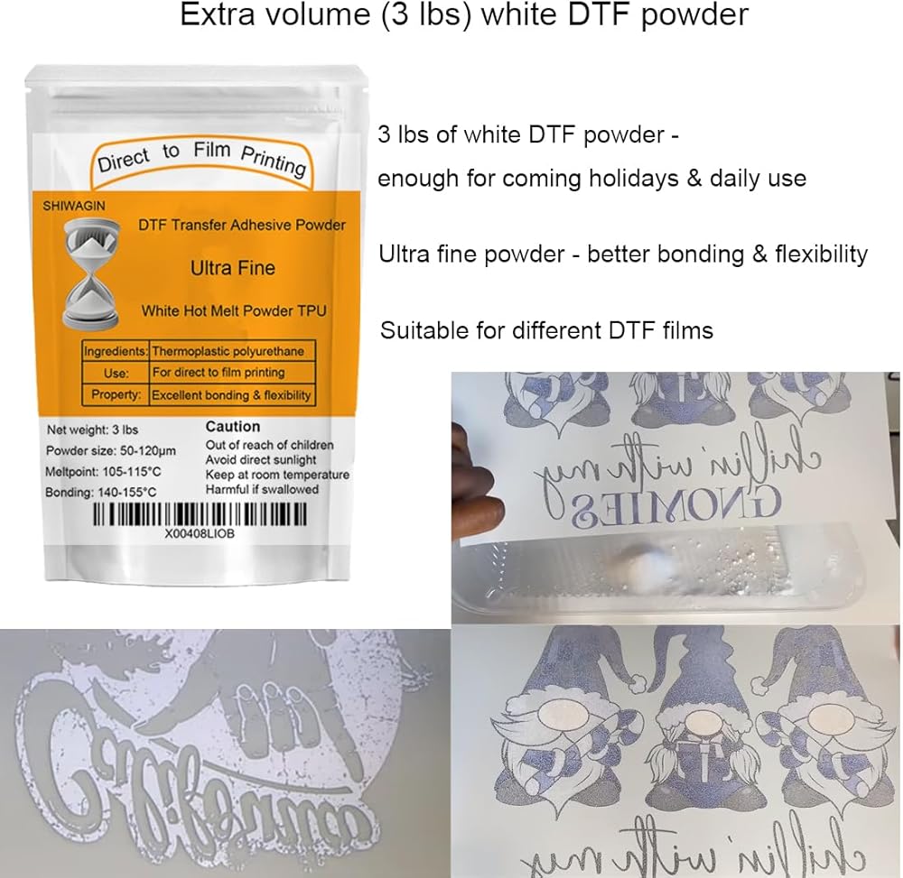 Package includes: 3 lbs of white ultra fine DTF powder. 3lbs of white DTF powder is enough for you to do sublimation and heat transfer for the coming holidays and daily use. You will get perfect pattern with our ultra fine DTF powder.