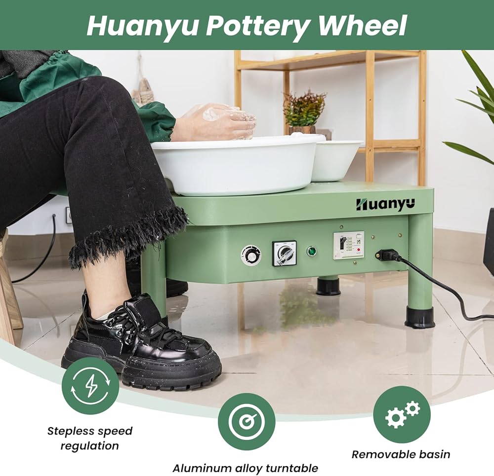 Huanyu عجلة الفخار آلة السيراميك 10 "مع مفتاح يدوي، آلة الفخار الكهربائية مع حوض قابل للفصل لاستوديو الفخار / المنزل DIY / هدية عيد الميلاد مدرسة الفخار (110 فولت للمراهقين)