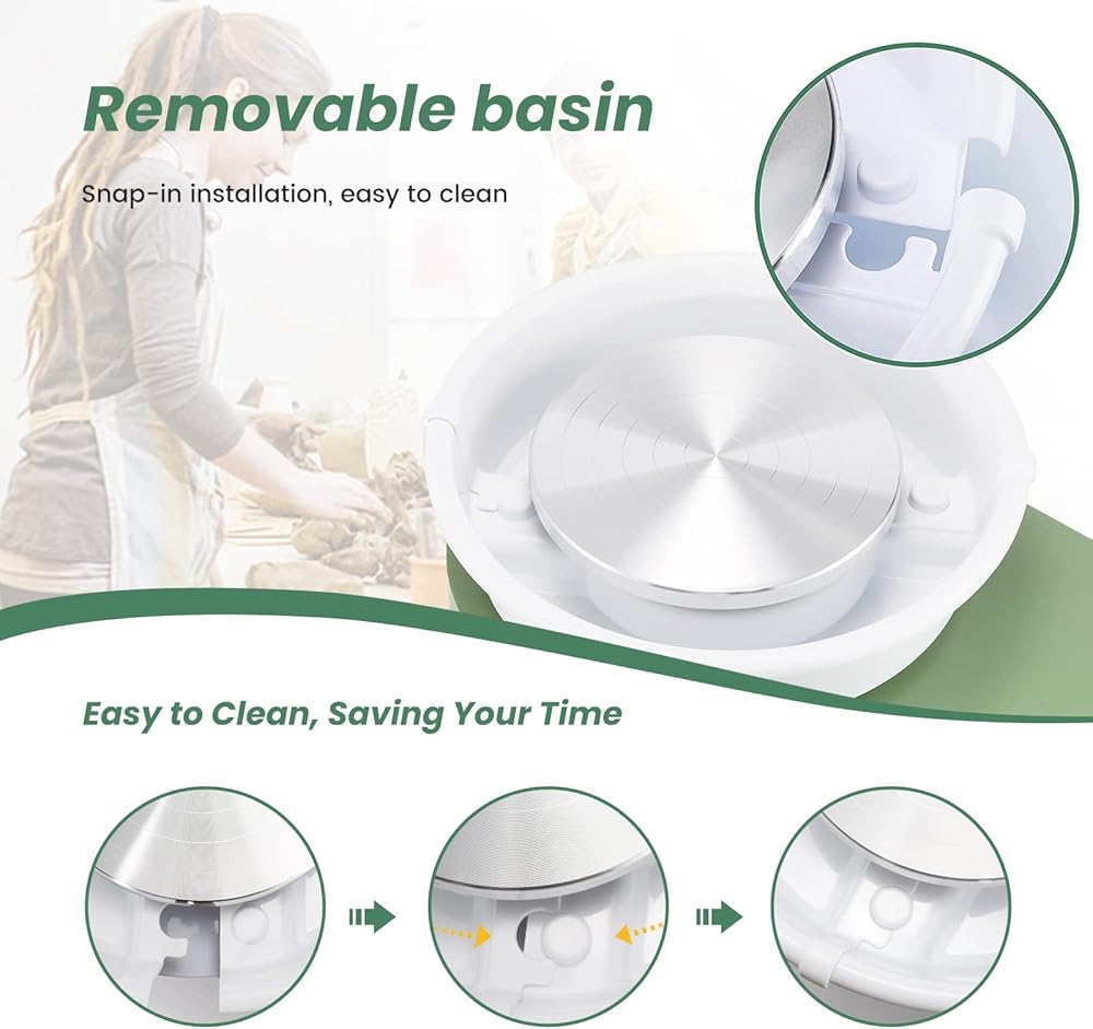 حوض قابل للفصل وسهل التنظيف: الحوض القابل للفصل مصنوع من مادة ABS الخاصة بآلة السيراميك الخاصة بنا لا يمكنه فقط منع السقوط والتآكل والتشوه، ولكن أيضًا سهل التجميع والتنظيف، مما يوفر وقتك.