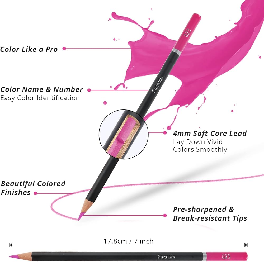 🌈[اختيار ألوان نابضة بالحياة] 🌈 أقلام التلوين للبالغين الخاصة بنا متعددة الاستخدامات وتحتوي على 72 لونًا ساطعًا مختلفًا، يمكنها وضع اللون بشكل جيد، سواء كنت تقوم بالتلوين في كتاب تلوين أو رسومات توضيحية أو تصنع تحفة فنية خاصة، فإن مجموعة الرسم بالقلم الرصاص الملون الخاصة بنا ستضيف لمسة إضافية من الألوان والتألق إلى عملك. بالإضافة إلى ذلك، يتم تسمية كل قلم رصاص باسم اللون والرقم الموجود في نهاية كل قلم لمساعدتك على التمييز بينهما.