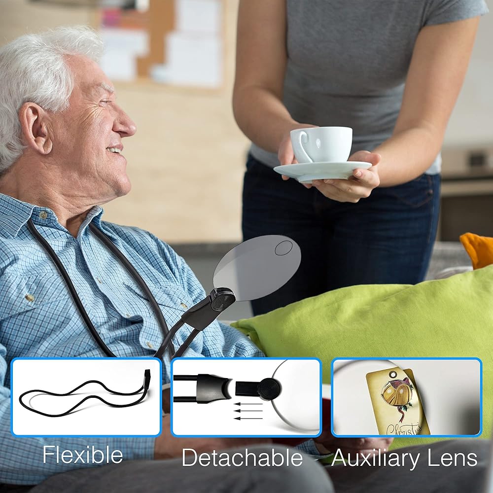 【مرنة وقابلة للتعديل: مع رقبة الإوزة الناعمة والمرنة، يمكن تعديل العدسة المكبرة إلى اتجاهات وأطوال مختلفة، ولن تفرك الرقبة؛ إنها هدية مثالية وفعالة لكبار السن