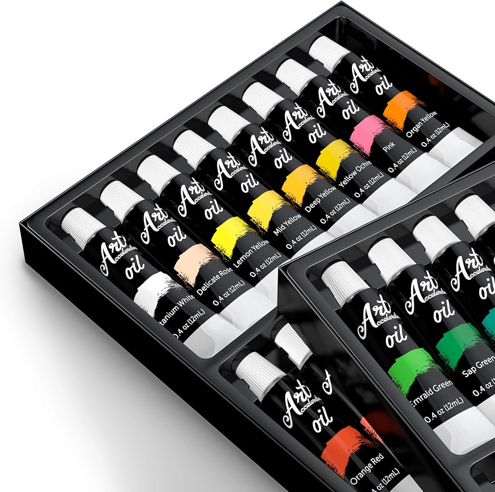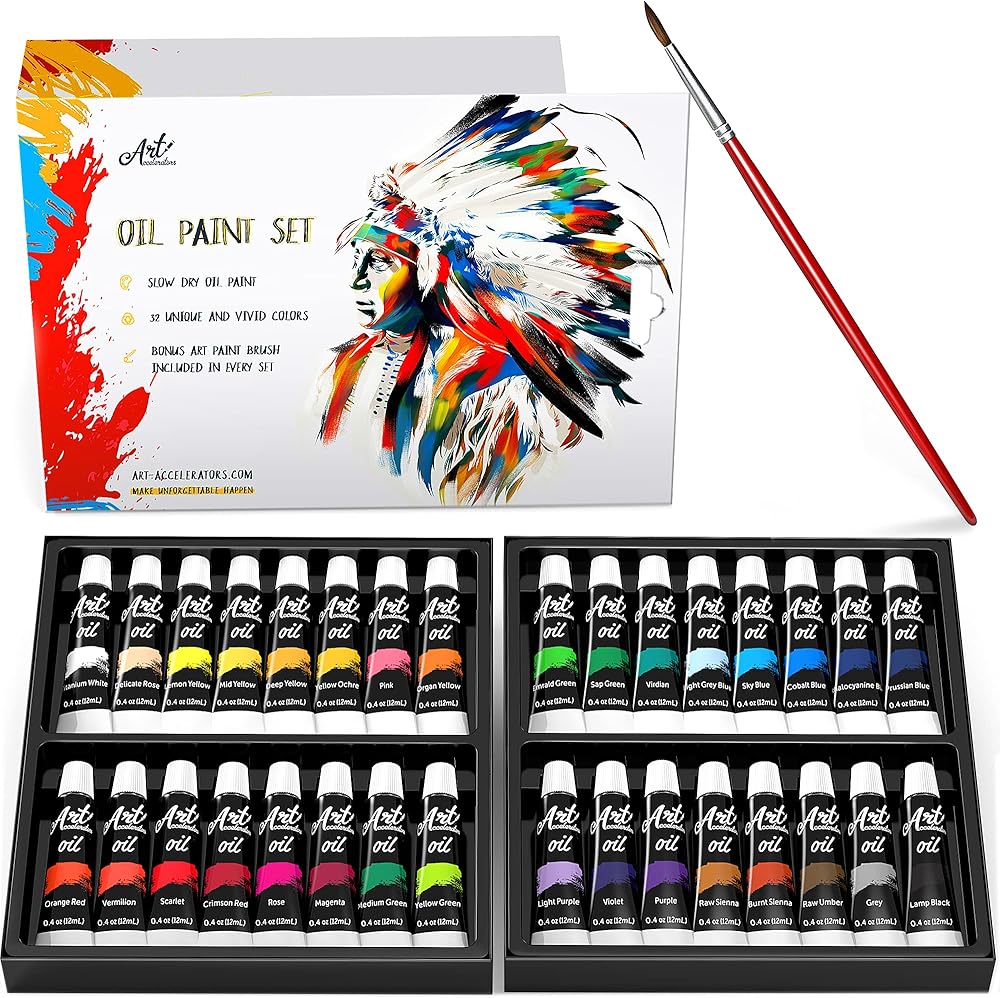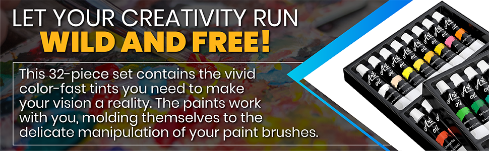 مع مجموعة الطلاء الزيتي المكونة من 32 لونًا يمكنك رسم ذهنك! لذا لا تتراجع! انقل أفكارك إلى القماش.