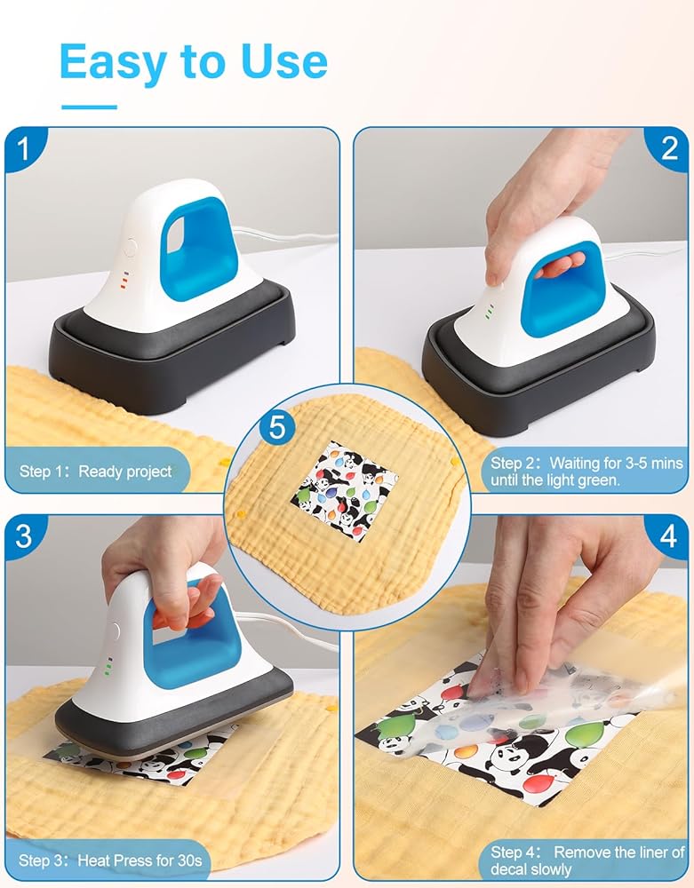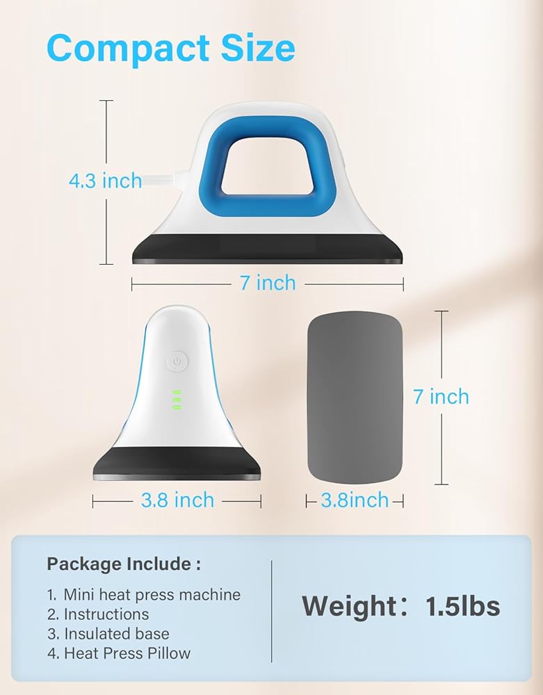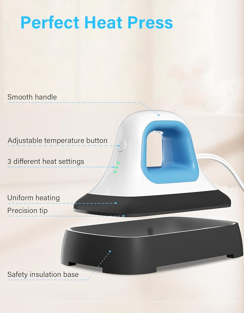 مكبس حراري صغير - آلة نقل صغيرة الحجم 7 بوصة × 3.8 بوصة، ماكينة ضغط حديدية صغيرة محمولة باليد لمشاريع التيشيرت والفينيل HTV، سهولة التحكم في درجة الحرارة مع قاعدة أمان وميزة الإيقاف التلقائي (أزرق)
