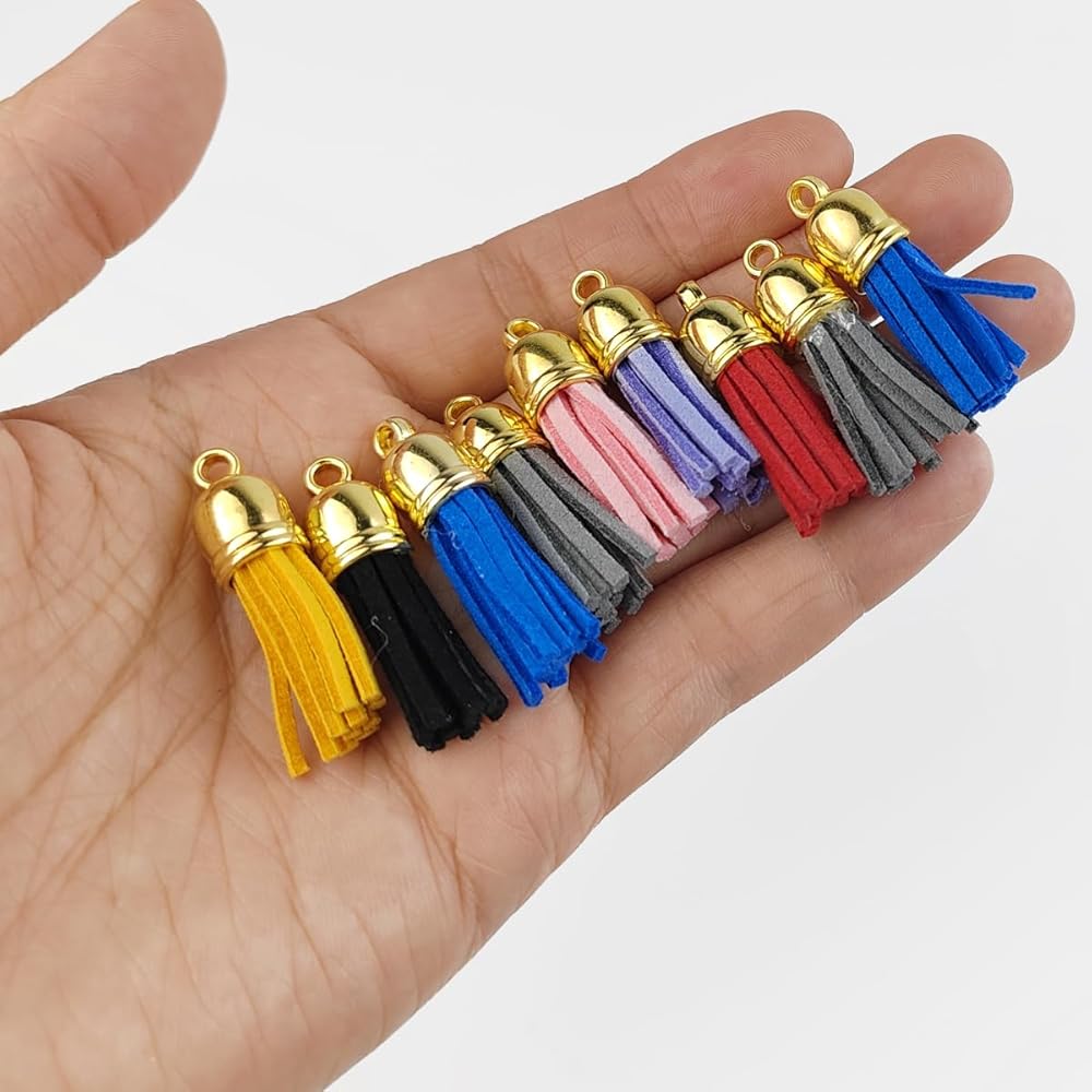 المواد: شرابات الحرف اليدوية الخاصة بنا مصنوعة من جلد الشمواه وغطاء الشرابة مصنوع من البلاستيك مع طلاء معدني، مما يجعلها خفيفة الوزن وجميلة ومتينة وعملية.