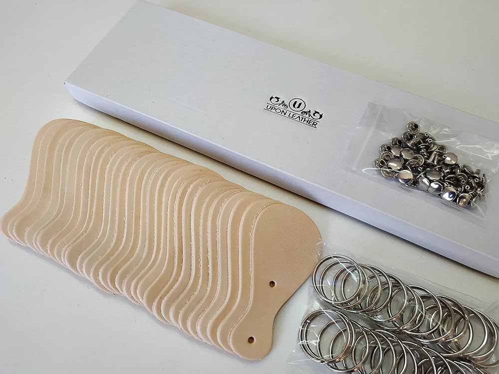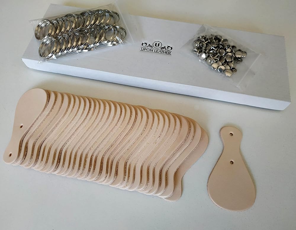 عبوة من 30 قطعة: مجموعات مفاتيح جلدية مصنوعة من جلد البقر الطبيعي الأصلي المدبوغ بالخضروات. لحرف سلسلة المفاتيح التي تصنعها بنفسك، أو الهدايا اليدوية والترويجية، أو الترويج التجاري، أو مشاريع ورش العمل، أو مجرد صنع وتخصيص مفاتيح فوب الخاصة بك. مثالية لبداية جيدة في الحرف الجلدية. جميعها معبأة في صندوق حرفي يحمل العلامة التجارية لتجنب الطيات أو التلف أثناء النقل. تتضمن حلقات مفاتيح ومسامير. هناك حاجة إلى أداة تثبيت البرشام لإكمالها.