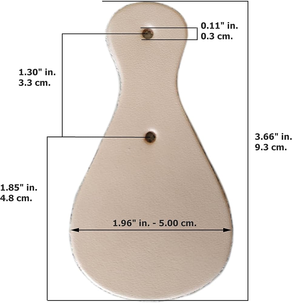 القطعة والأبعاد: 30 مفتاح جلدي فارغ: 3.65 انش طول × 1.97 انش عرض. | وزن الجلد / سُمك 6-7 اونصة في المتوسط. | ++ بلس 30 حلقة مفاتيح: القطر الداخلي 1 انش. - القطر الخارجي 1.2 انش. | ++ بلس 30 مسمار محدب بغطاء مزدوج: قطر الرأس/الغطاء 0.35 انش. (9 ملم) - ارتفاع البرشام 0.35 انش. (9 ملم). | حلقات مفاتيح ومسامير بلون النيكل.